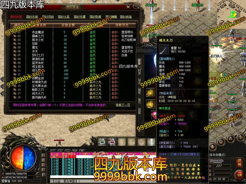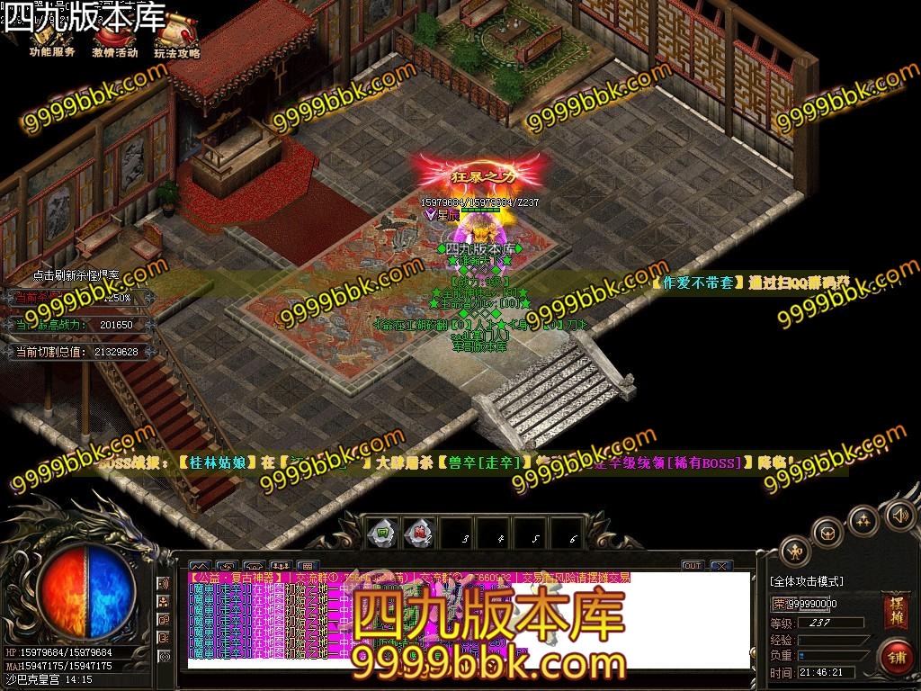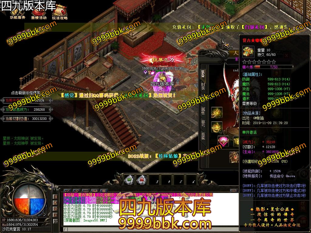 【游戏介绍】本游戏地图多、BOSS多、爆率高、不花钱一样叼! 【元宝比例】1元:=1点 无任何比例!一切网站!首选! 【游戏介绍】★★一切看脸!真正无门槛,散人不花钱,一样爆终极! 【游戏特色】全新设置.颠覆传统模式.真正的散人逆袭.有时间等有一切! 【游戏提示】本服禁止一切非法工具,空白名字,一旦发现直接删! 【游戏特色】一切为散人设计,限时奖励、散人有时间一样追杀土豪! 【游戏特色】一切为散人设计,限时奖励、散人有时间一样追杀土豪! 【游戏特色】一切为散人设计,限时奖励、散人有时间一样追杀土豪! 【游戏焦点】中秋团圆大作!全新复古沉默神器,重磅出世! ============================================================