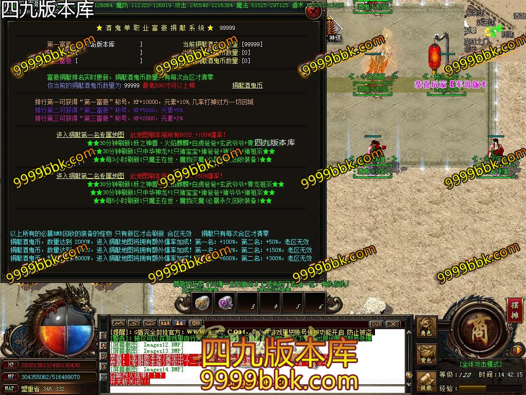 <2. 本服最高充值300元,核心充值50-100-300回馈地图.多出来的酒鬼币可以拿来捐献排行进入排行地图