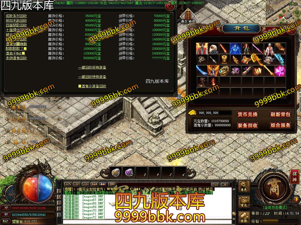 <3. 散人不充钱也可以回收装备,回收币,回收酒鬼令,合成上三,小怪也有可能爆终极,只要你有时间.