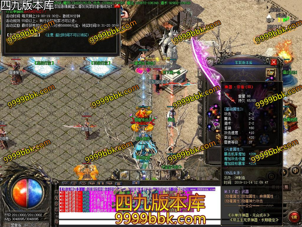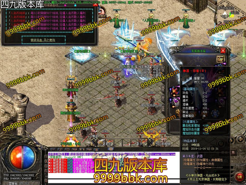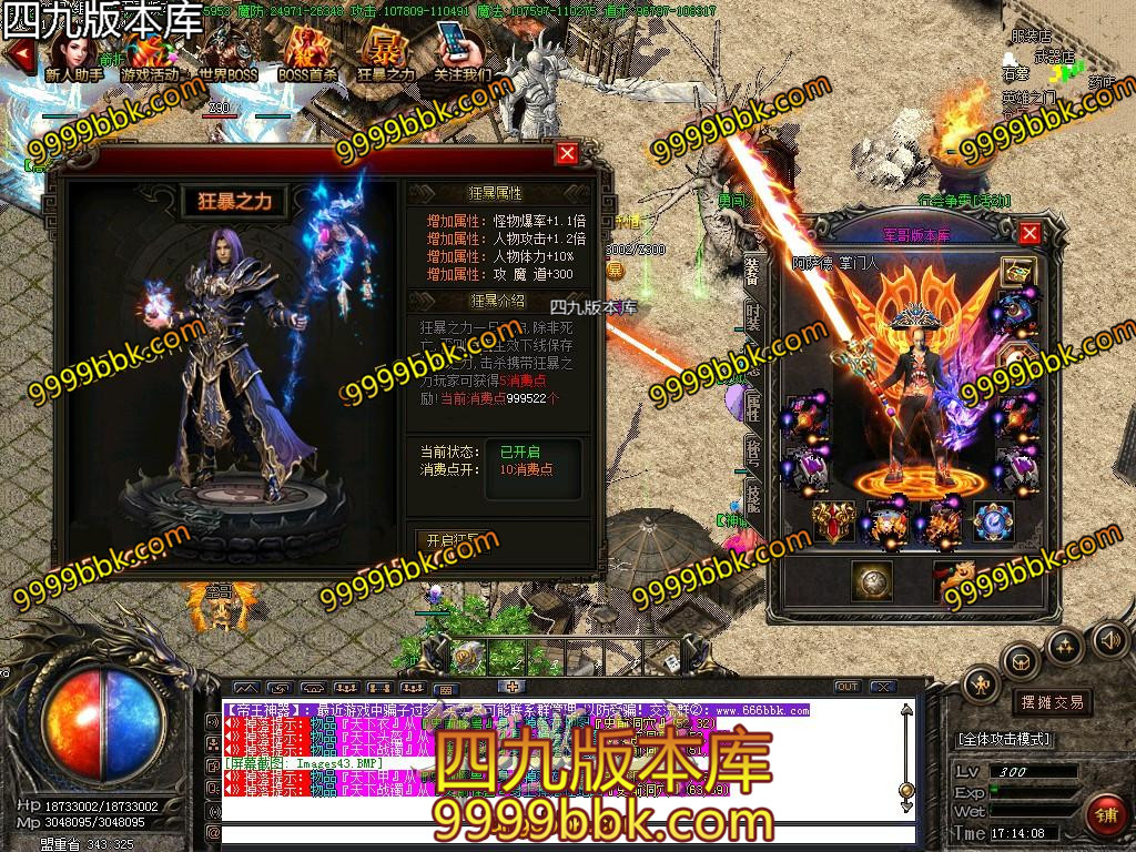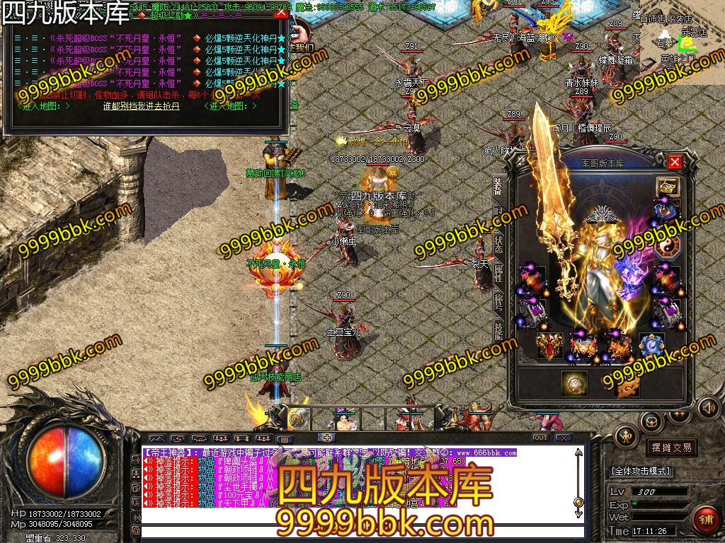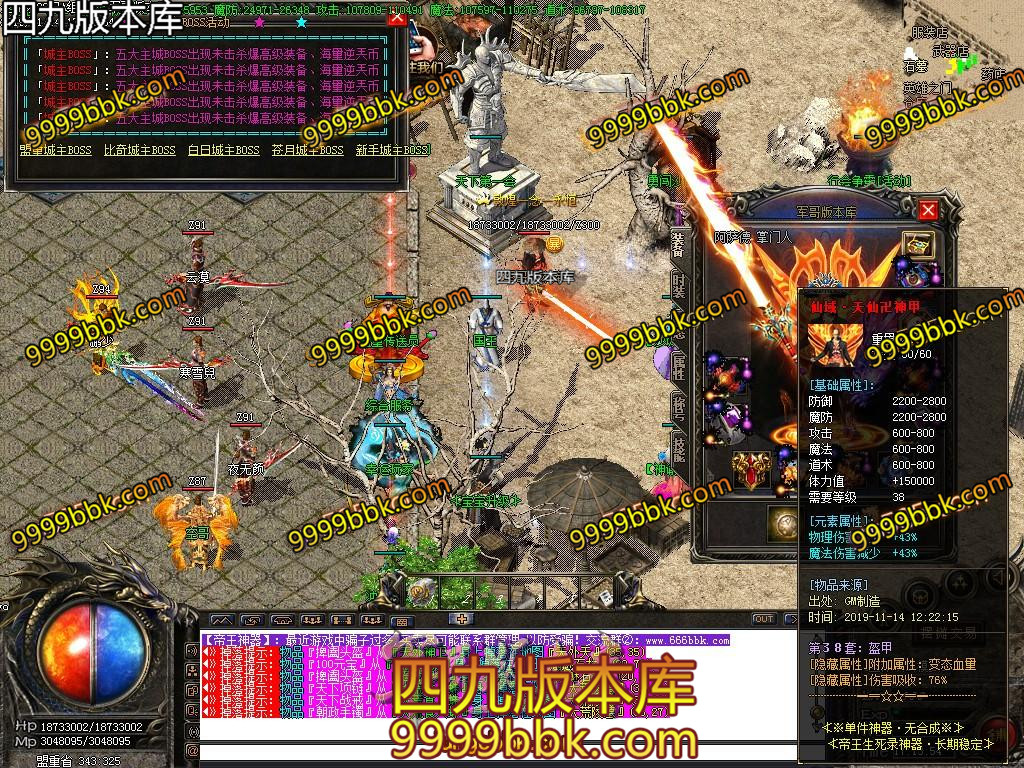 福利BOSS:任何地图每小时都会刷新一只福利BOSS,288万血,0防御0攻击。可以爆出全部装备