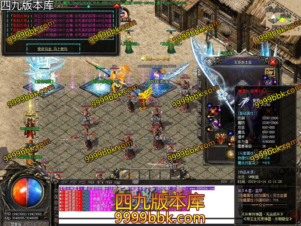 游戏玩法:本服转生和封神相当重要,赠送强悍属性,封神章更是杀人打宝的装逼利器!必须搞起!