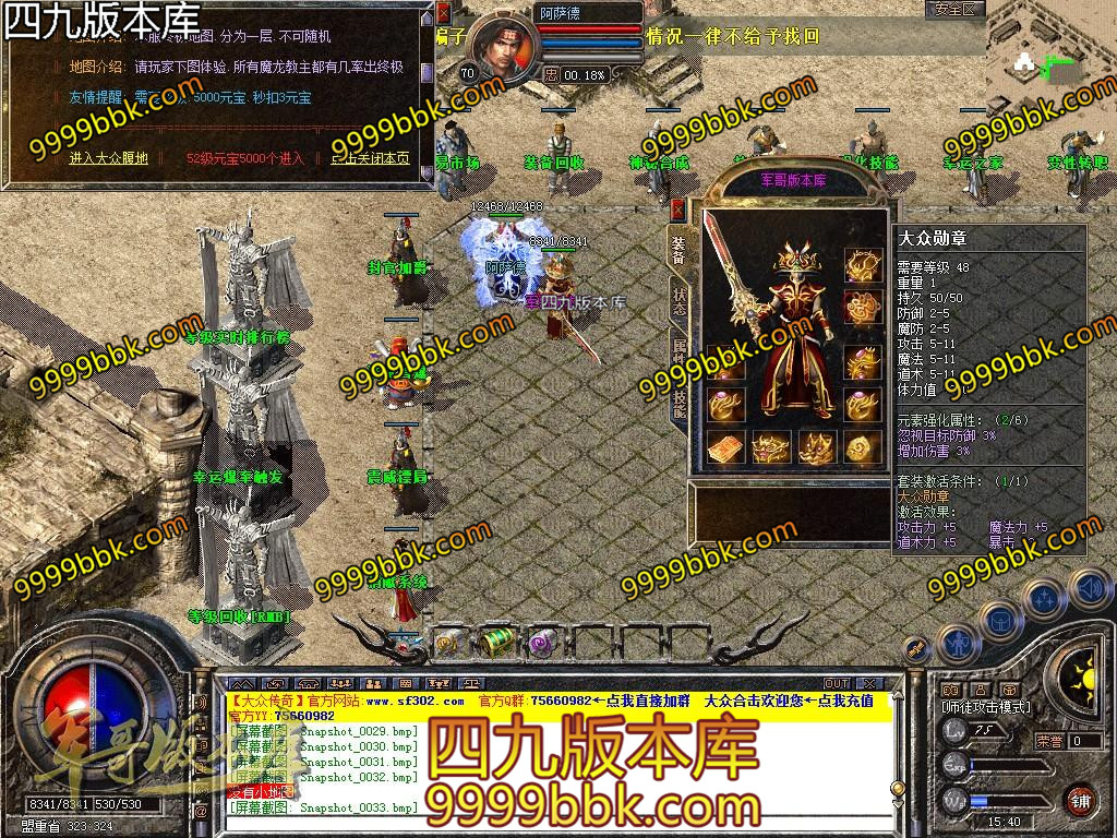 大众合击 为1.80复古星王版本! 9PK霸屏联体+各发布站重金广告轰炸,打造最强人气火爆合击 每日开区时间:下午13点 晚上19点.每个新区提前2小时开放测试 本服无天关,无泡点,无赌博 装备一切靠打!散人首选 Rmb真实永久回收装备,商人40秒秒回收,决不坑人,装备长期 所有职业和装备属性,经历精心测试反复调试!三职业完美平衡 本服采用云端插件强力封挂+客服24小时在线接受玩家举报 重金投入:多机负载,电信+网通多达8条线路可选,保证全国不卡 公司实力营运,分工精细,责任到人,公平公正!团队10年开服经验 ============================================================