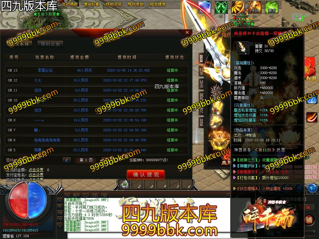 金币充值比例 1 :10   版本为正常开区端有问题联系QQ 616102345  处理