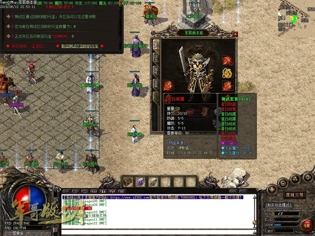 假人智能跑动-释放技能 综合公告游戏特色游戏定位开区说明 176昔日赤月·三大神器·独家新版·公平公正·等你来战 元宝比例1:1000 点卡多送90% 网银多送100% 多充多送!! 圣战→黄金圣战→完美圣战→龙吟→昔日[所有装备全爆] 潘多拉爆龙吟剑甲,元素精灵爆昔日剑甲-全部怪物爆出 定制封挂网关,封杀市面上99%外挂!!! 【沙城奖励】:新区第2天晚上集体攻沙,首次拿沙奖励50W元宝+三种宝石*5! 【游戏介绍】:广告散人服,人气火暴,长久稳定,真正公司运营! ============================================================