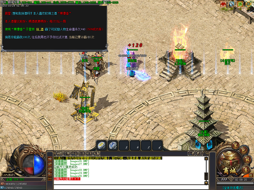 9.第二大陆 每个地图都会刷新 很多BOSS  血量越多的BOSS 爆率越好  每个BOSS打死之后会刷新在 土城中央的 镇妖神殿  BOSS是本服的必抢怪 遇到切勿放过。