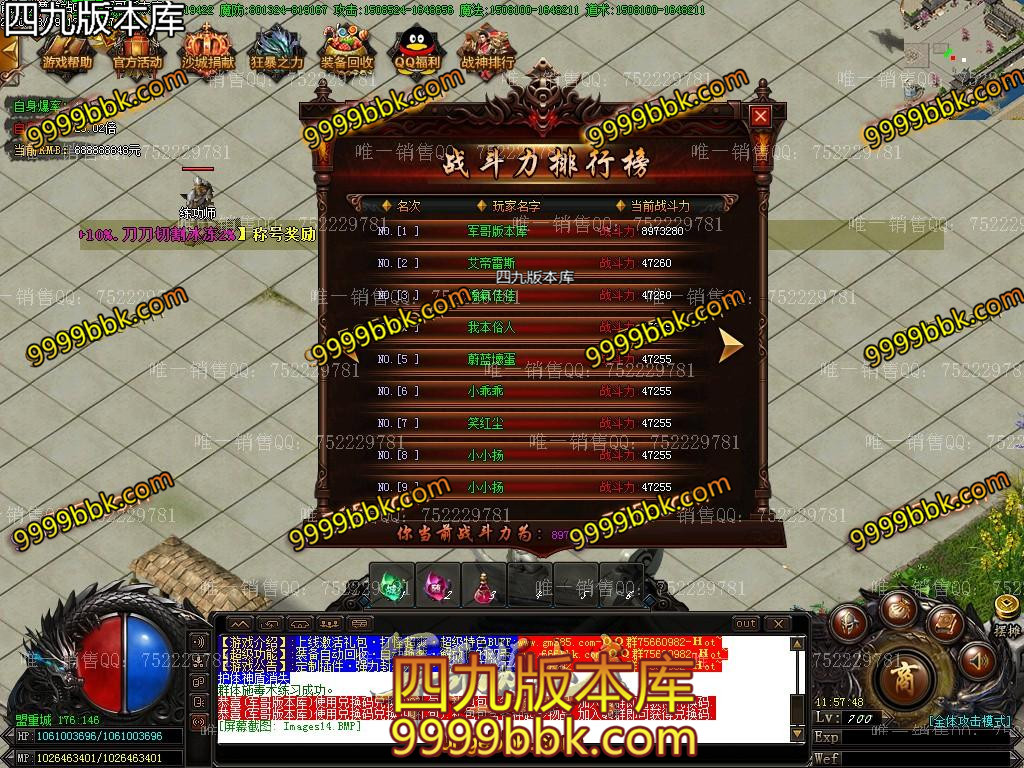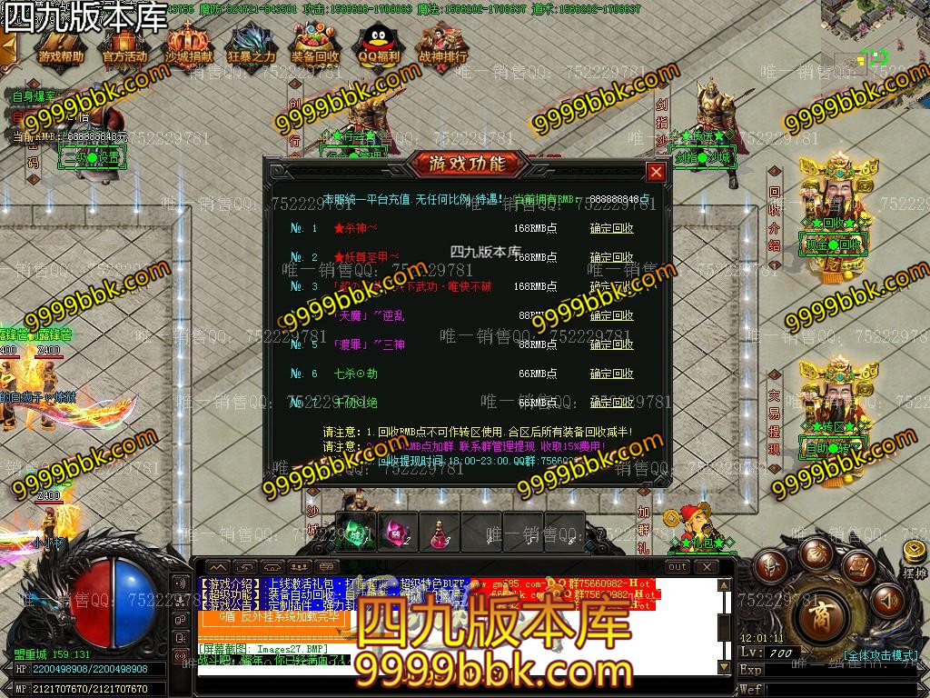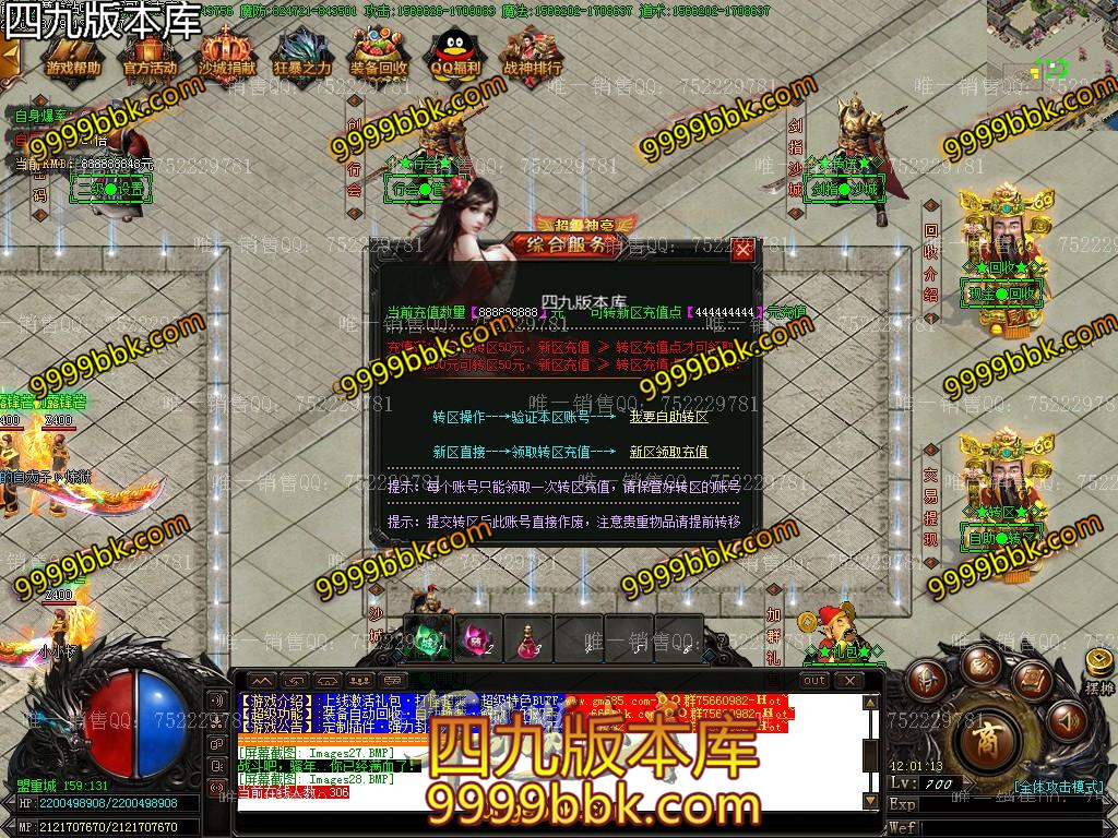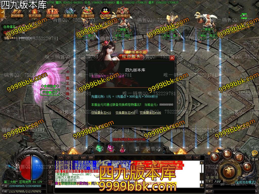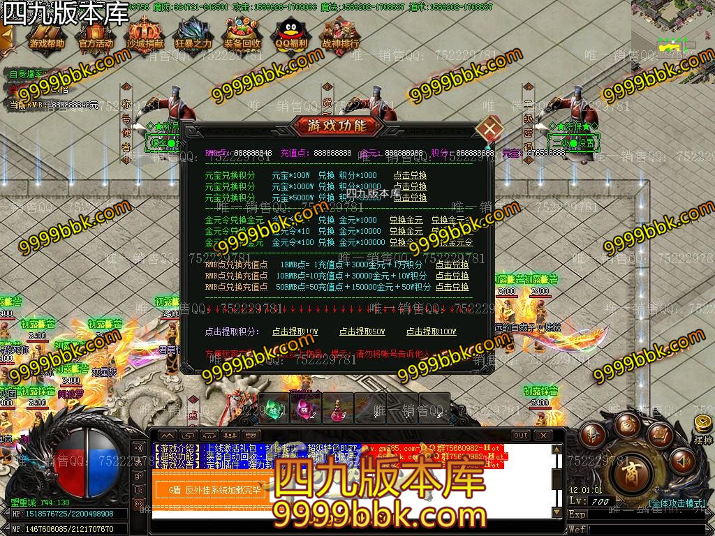 金币充值比例 1 :10   版本为正常开区端有问题联系QQ 616102345  处理