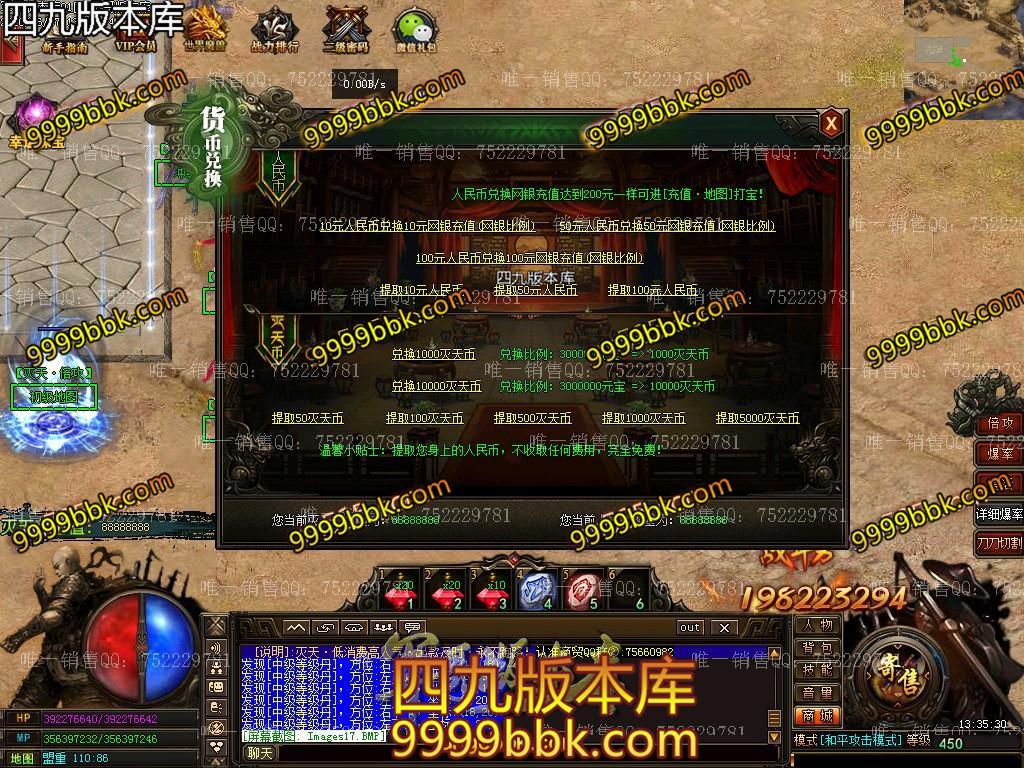 金币充值比例 1 :10   版本为正常开区端有问题联系QQ 616102345  处理