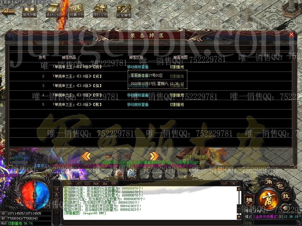 金币充值比例 1 :10   版本为正常开区端有问题联系QQ 616102345  处理