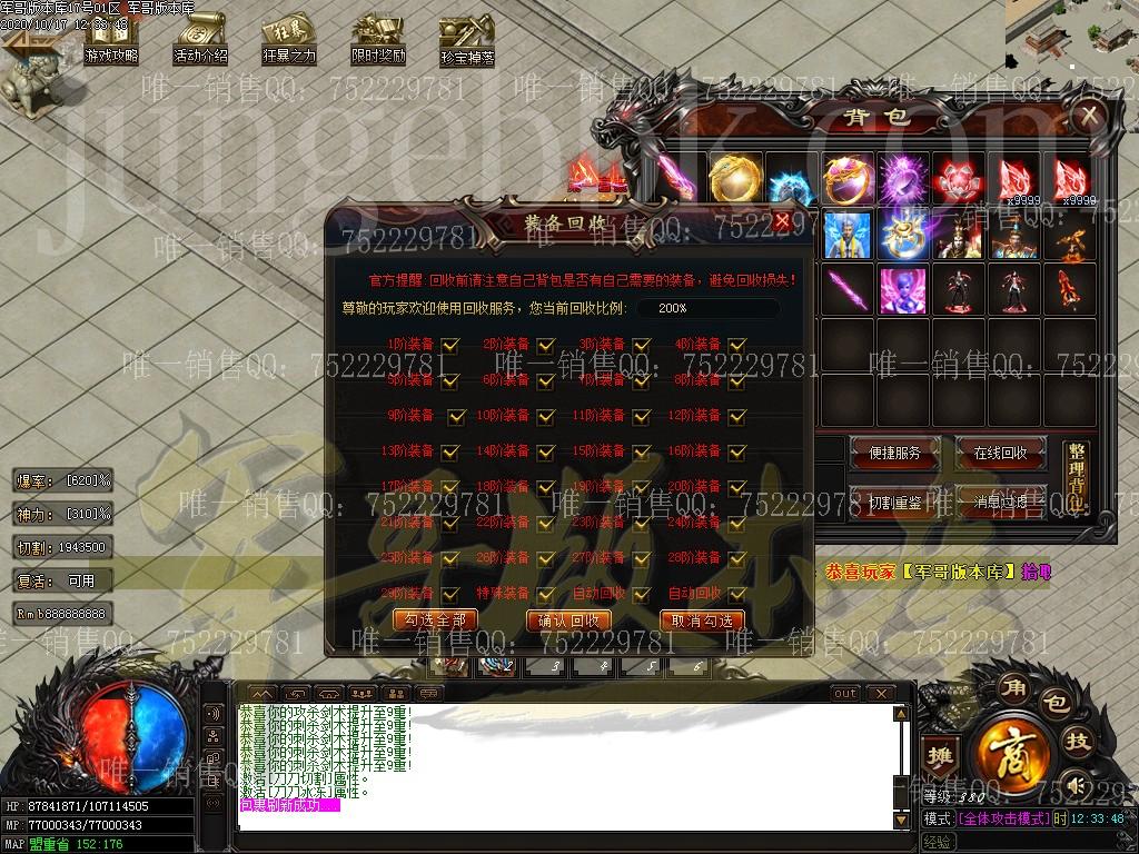 [GOM引擎] 17-644独家惊天神器无限刀激情单职业传奇服务端-带假人-ESP插件-光柱-自动回收-自动挂机