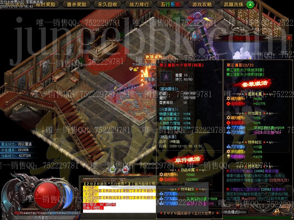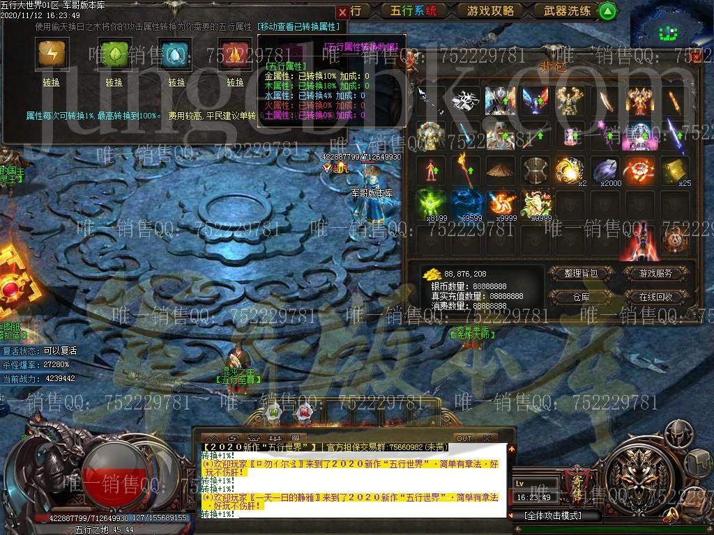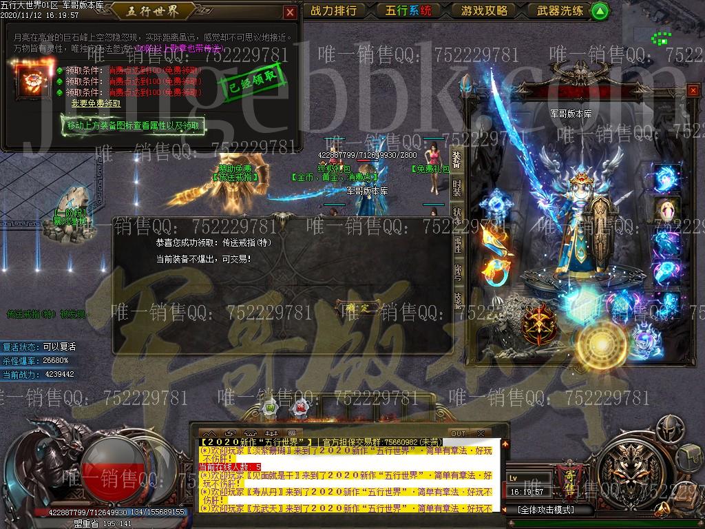 【版本特色】2020年全新独家《五行大世界》单职业传奇!