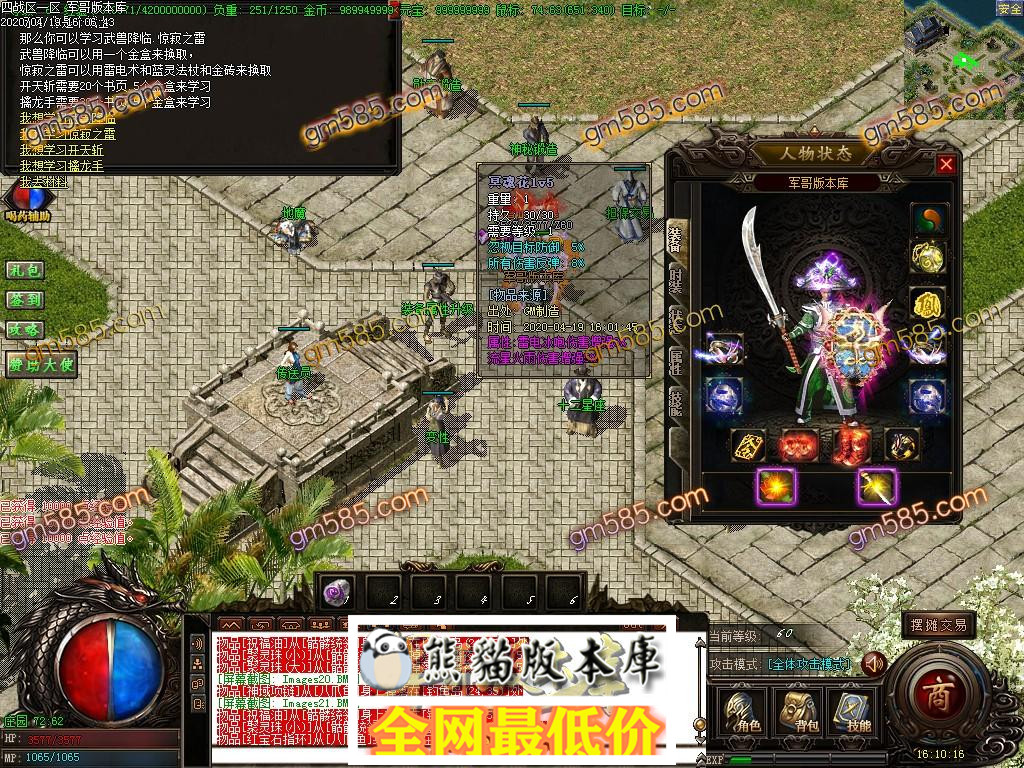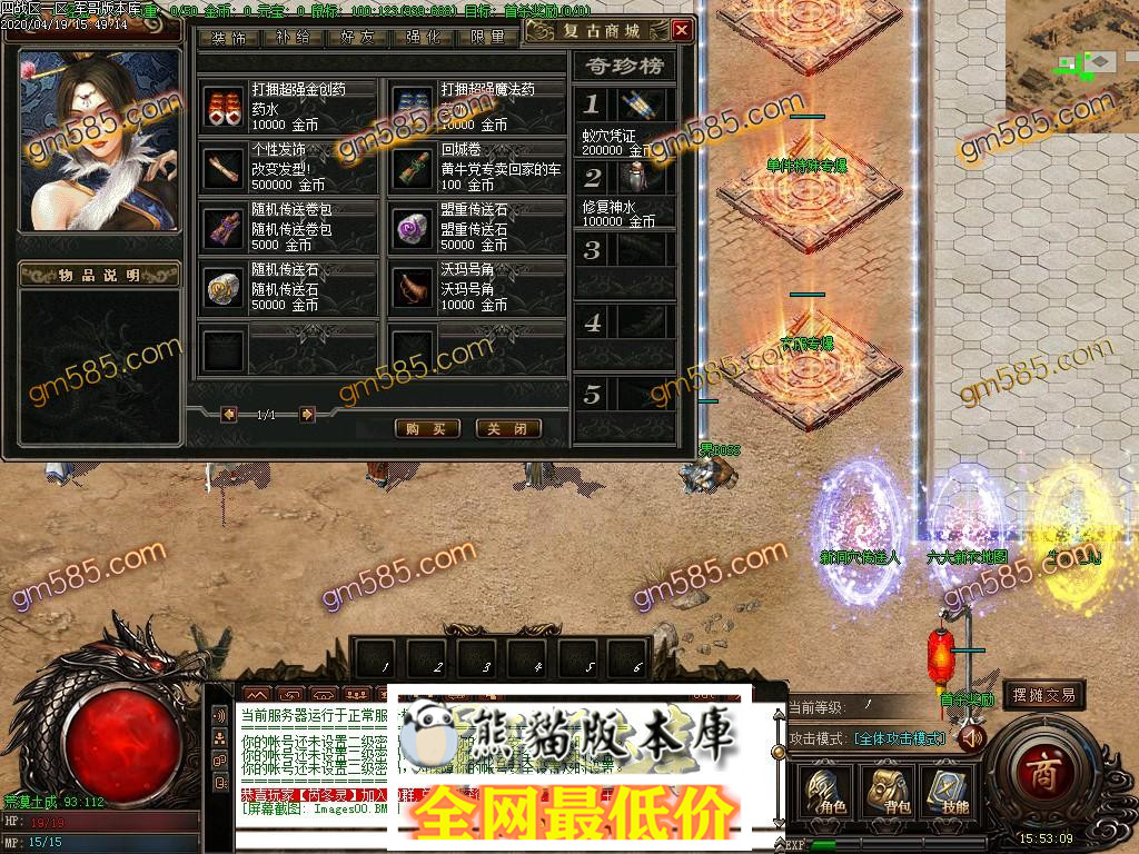 战士请到交易市场找 地魔 学习武兽降临和惊寂之雷.开天斩.53级变成强化武兽