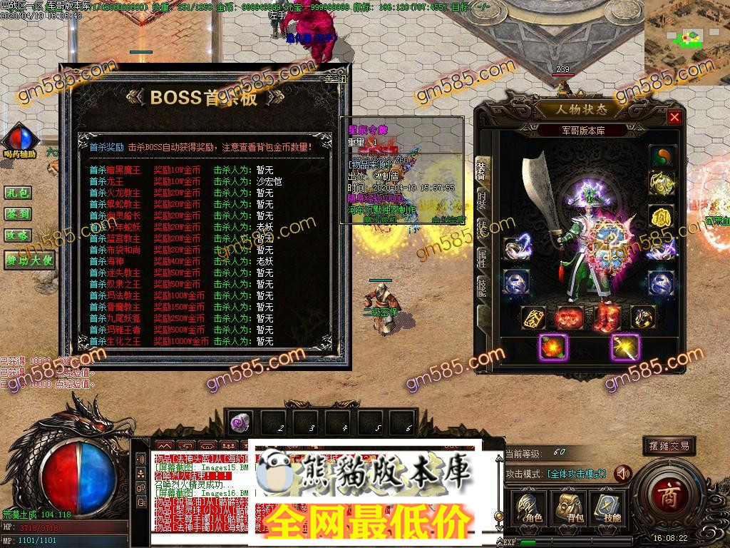 地图BOSS多,金币好打,装备好打,散人的选择!!!!!
