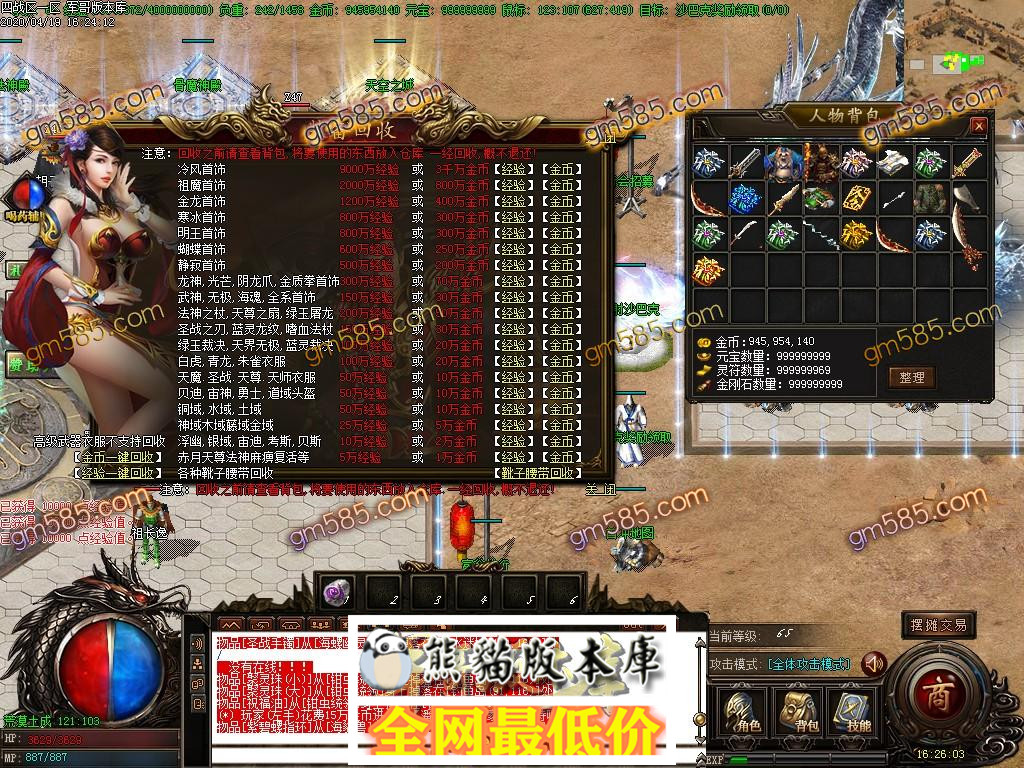 本服金币非常好赚,祖玛以上(包括祖玛) 任何装备都可以回收金币和