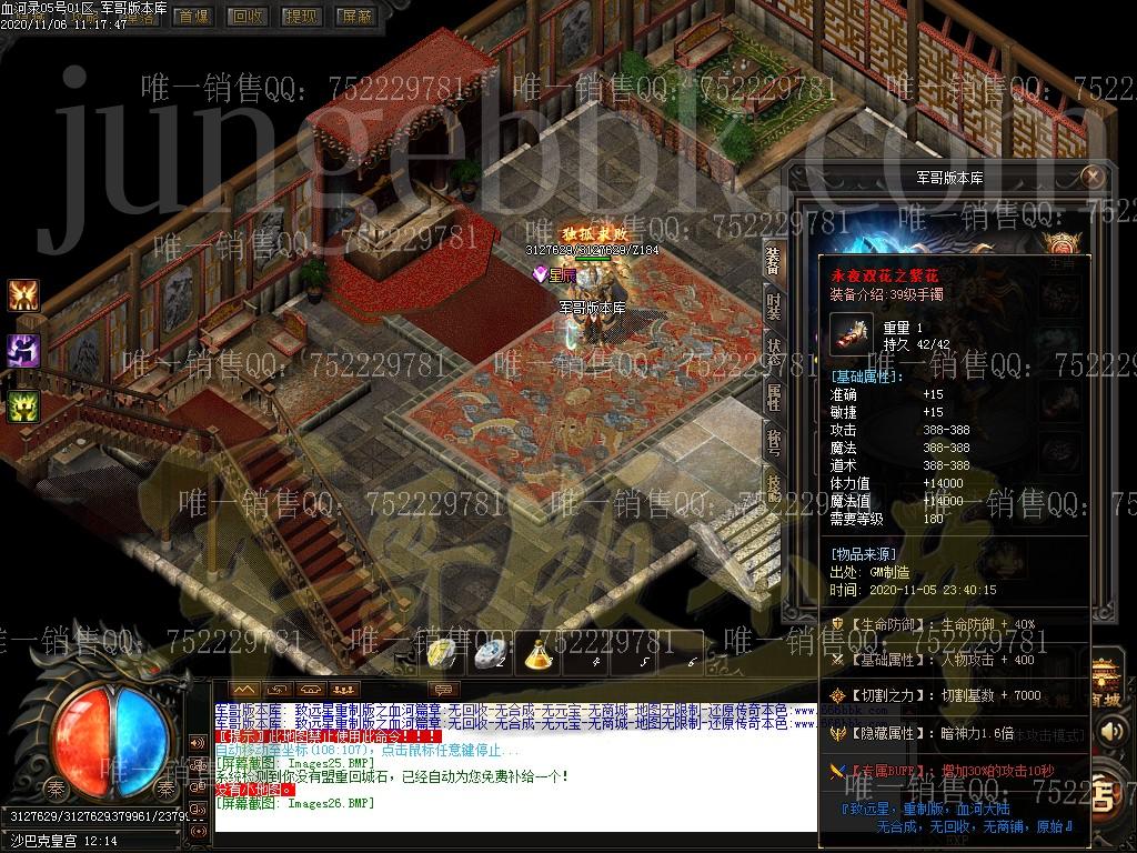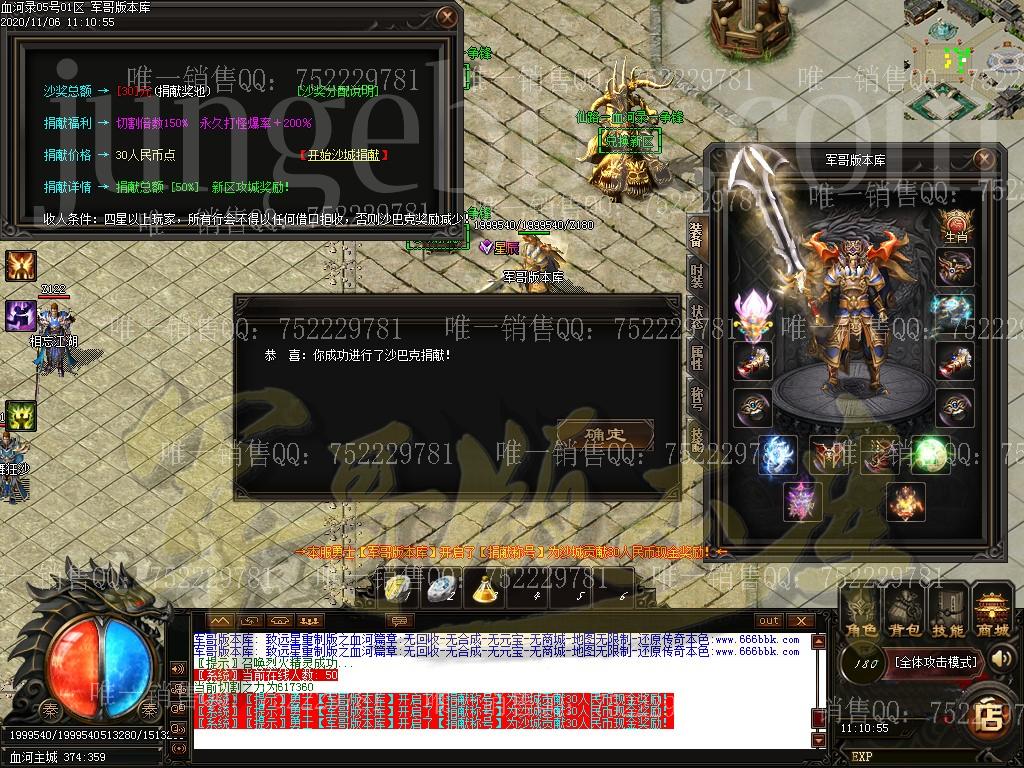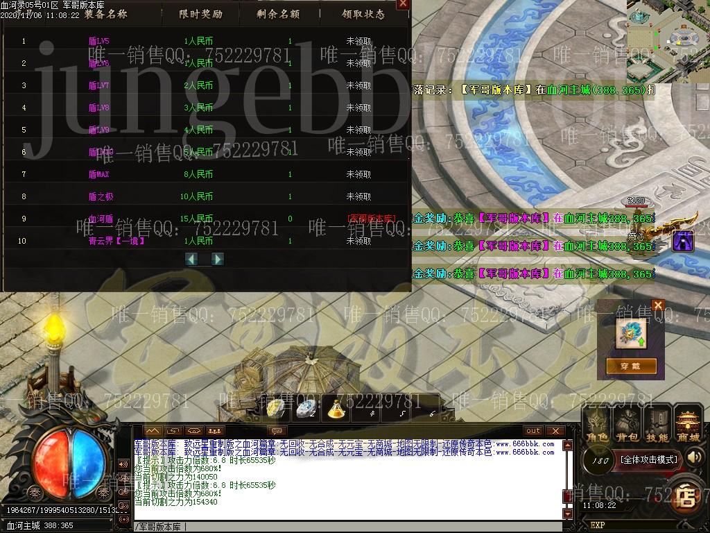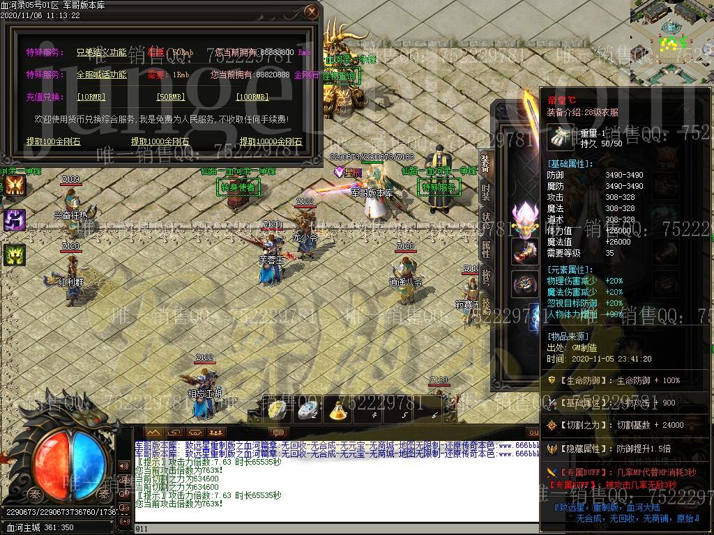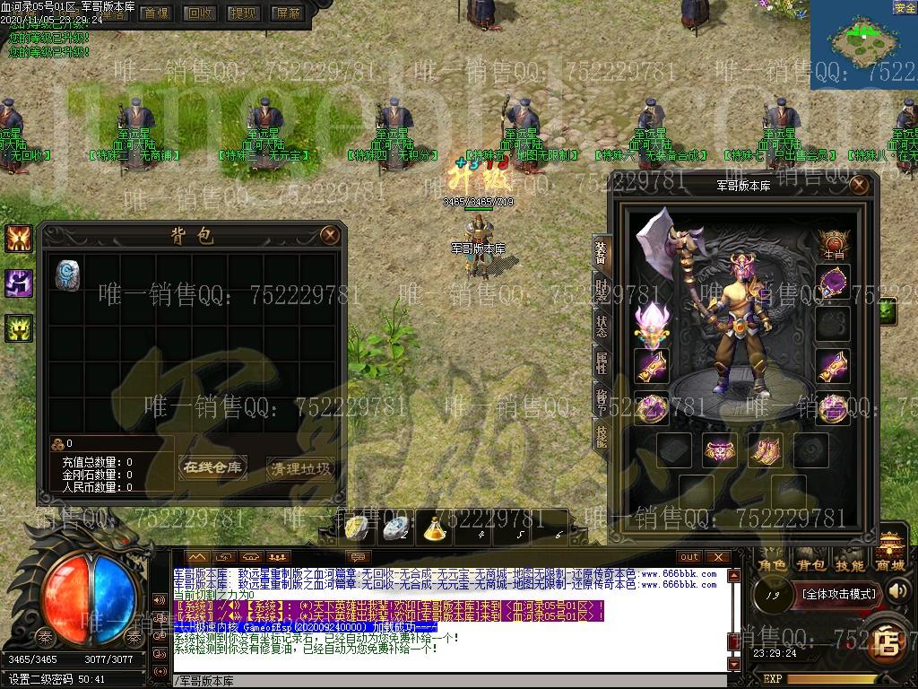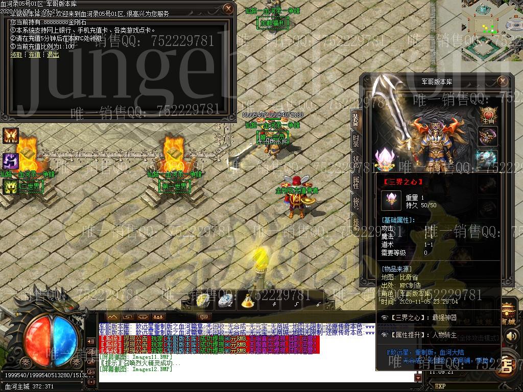 全服只出售一个会员无其他任何合成装备全靠打无回收 游戏不设置任何装各回收,有好装备就带垃圾就丢无商城:游戏不设置任何可的消耗物品, 全部怪物爆出无合成:所有装备全部靠打,没有装备可以合成(包括特殊)无限制:地图无任何限制 ,有能力就去闯,绝无限制要求消费点:唯一出售物品,会员50米+狂暴10米+捐献30米 ============================================================
