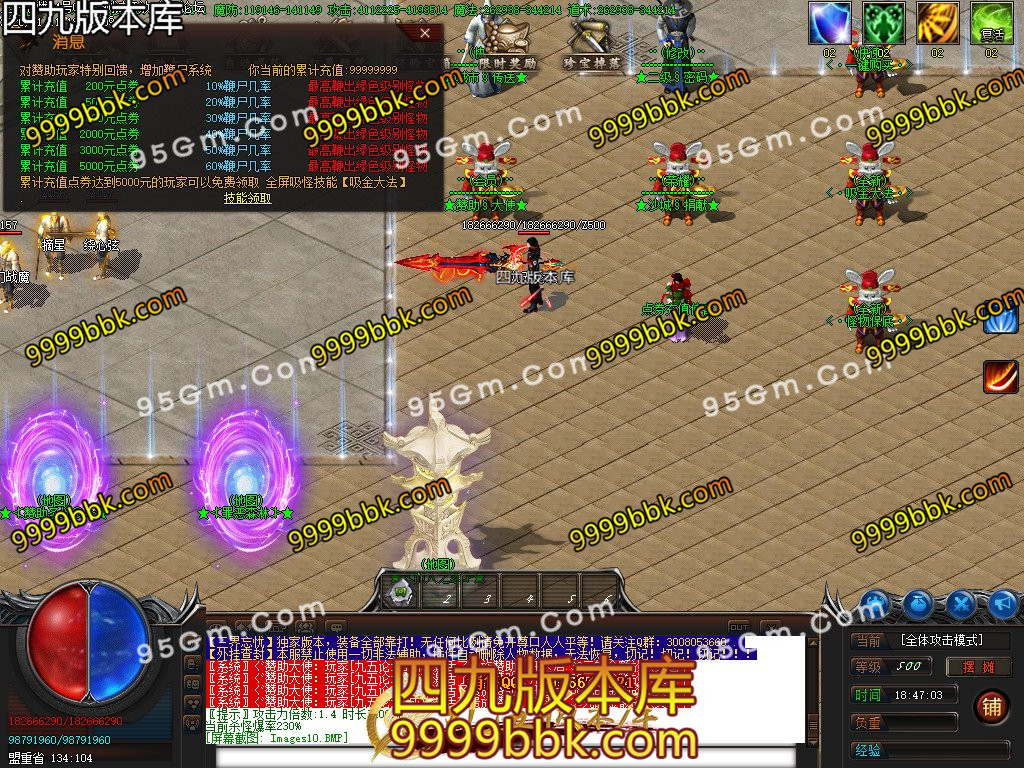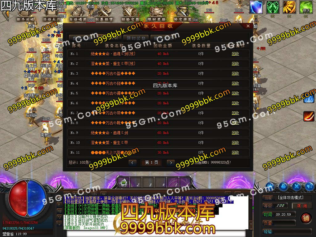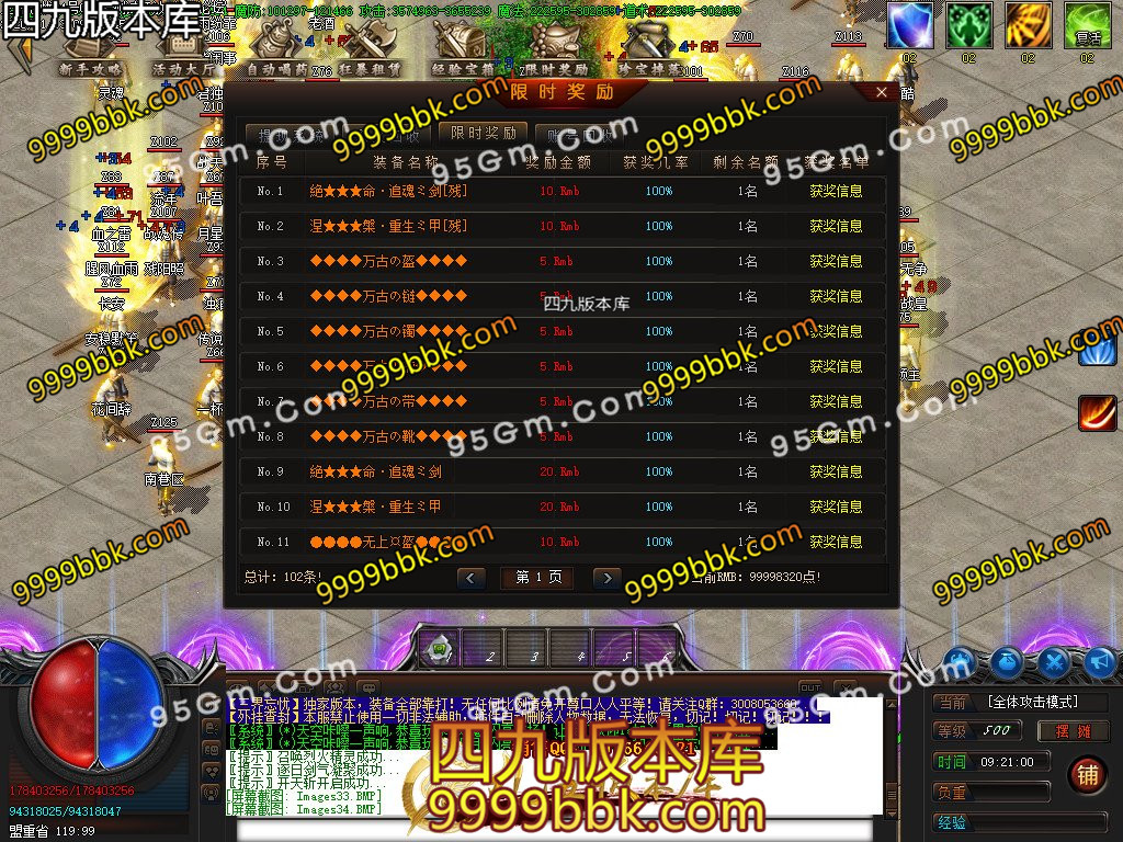 【游戏特色】 单区数万限时奖励,上百件装备回收,光柱亮瞎你的眼