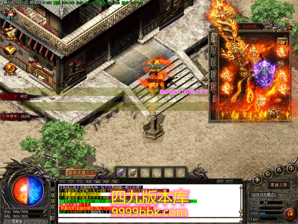 很精致好玩的的复古微变火龙版本,装备爆出有不同的等级,普通级,完美级,传说级等等,高级装备有元素属性,游戏里有机会老人NPC,这个是很神秘的一个老人,可以带你去一些神秘打怪地图,