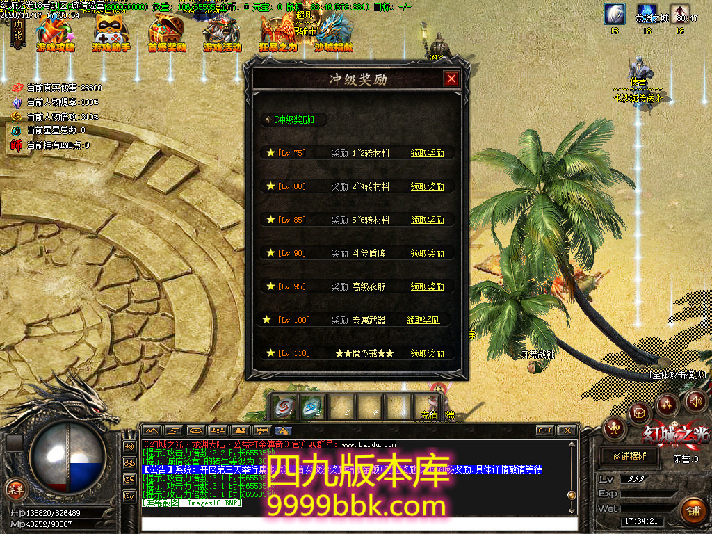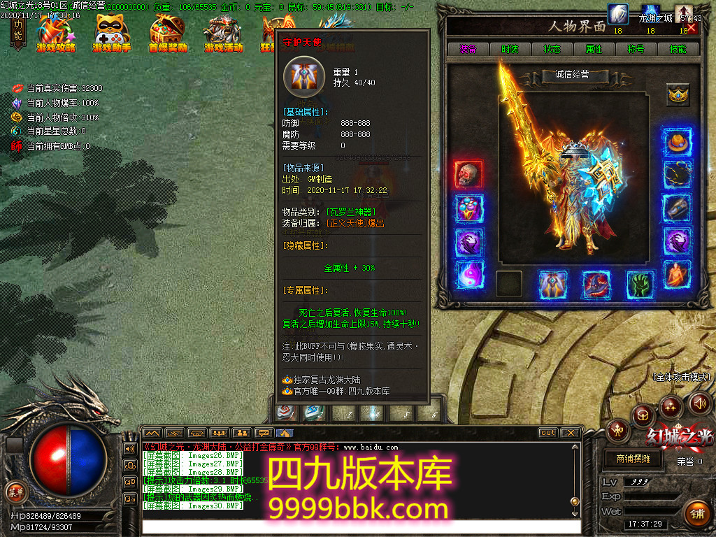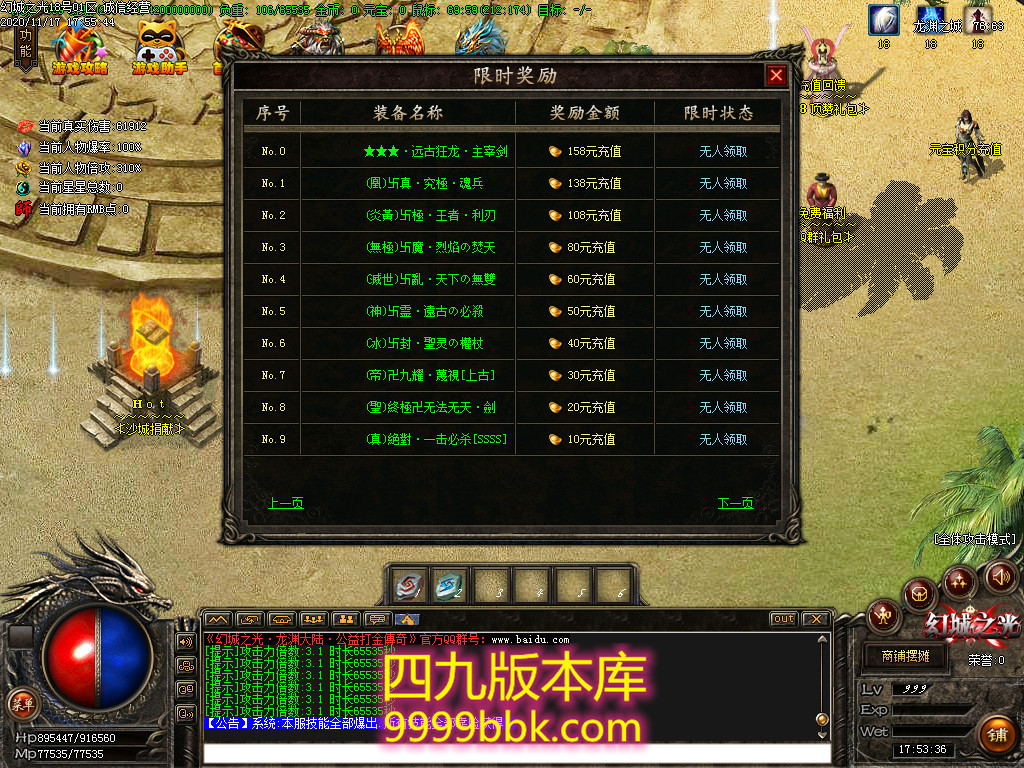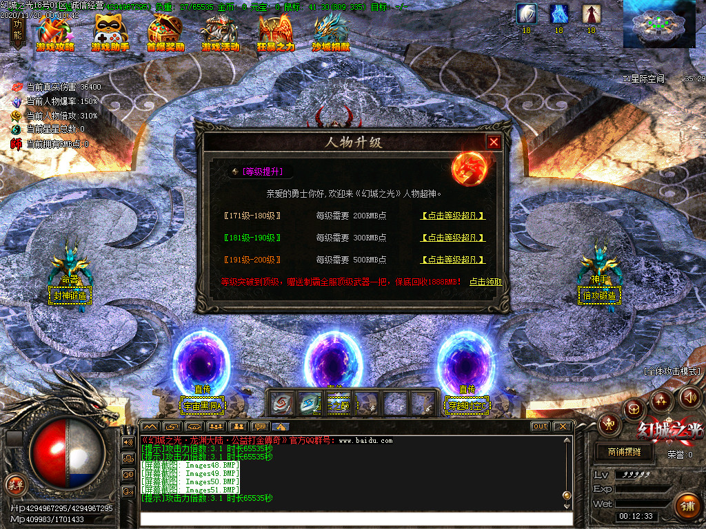 2.充值30,沙城捐献,触发:真伤+50000,真伤翻倍叠加10%,以及其他属性!