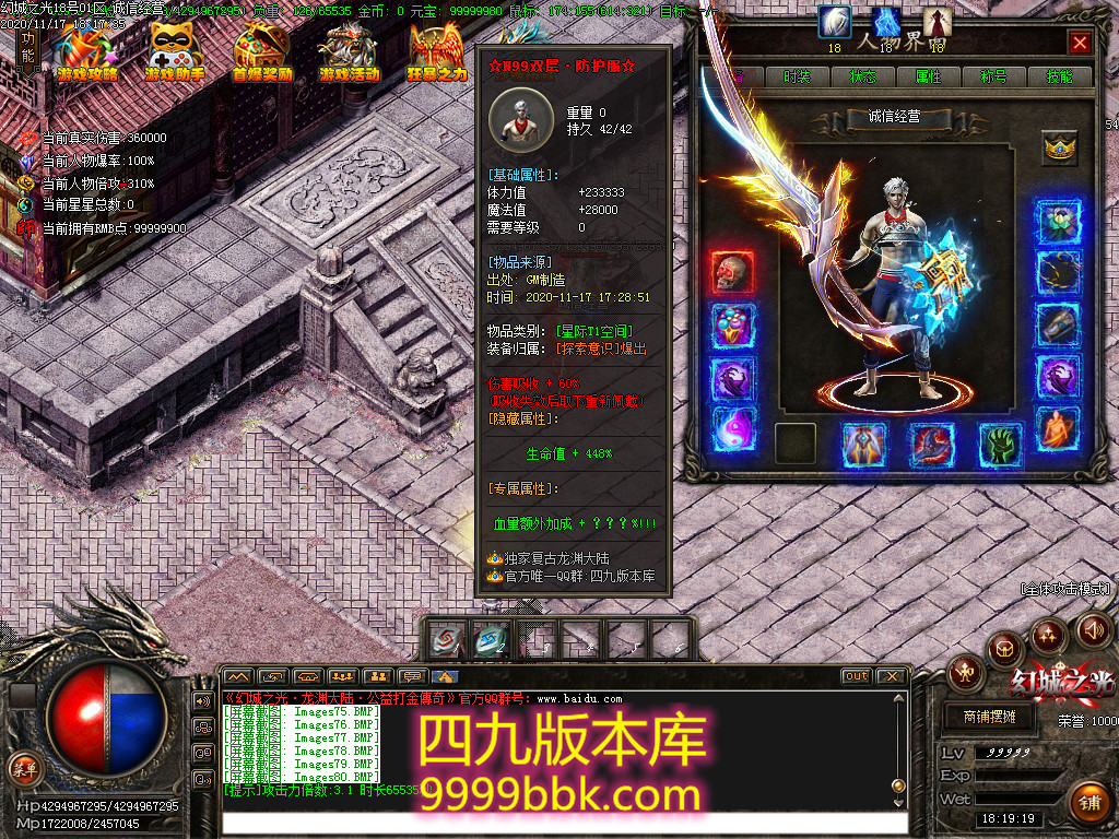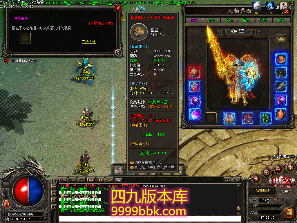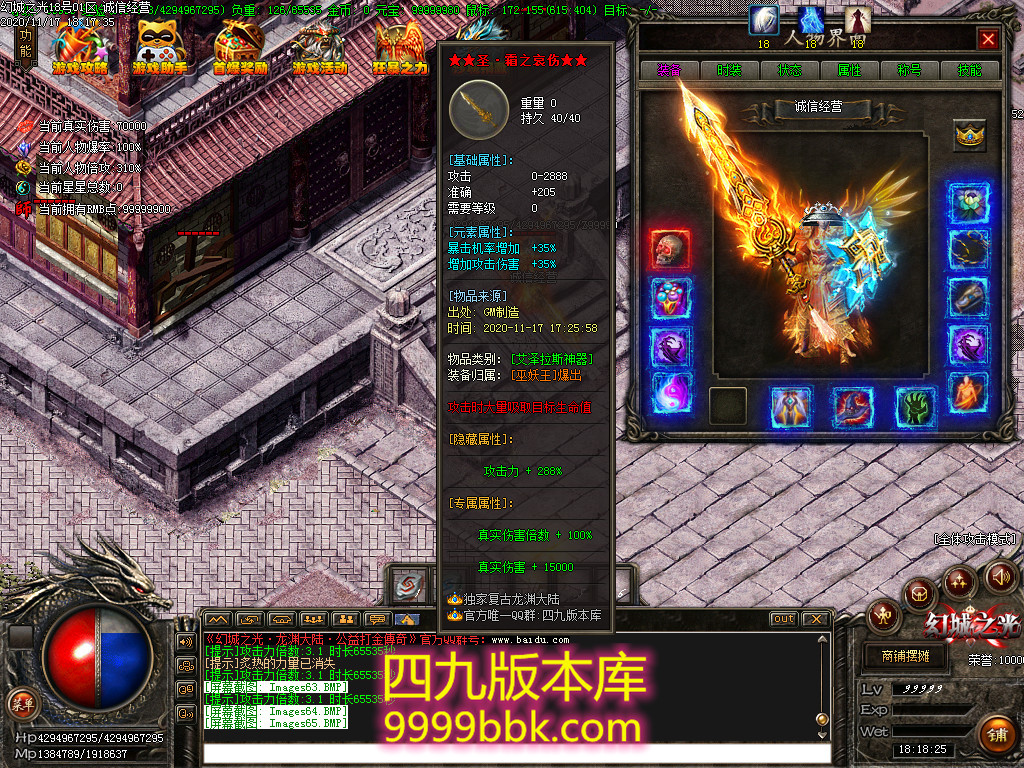 1.充值38元宝,领取满回馈,附带:真伤翻倍(切割)叠加30%,等爆发属性!