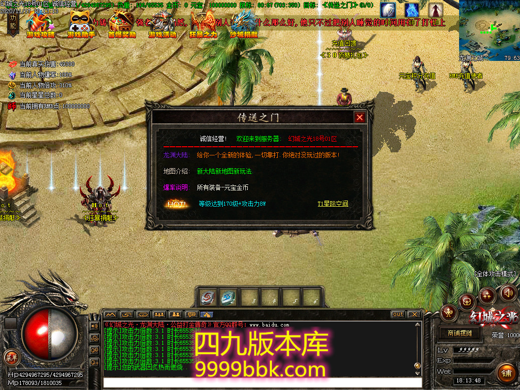 金币充值比例 1 :10   版本为正常开区端有问题联系QQ 616102345  处理