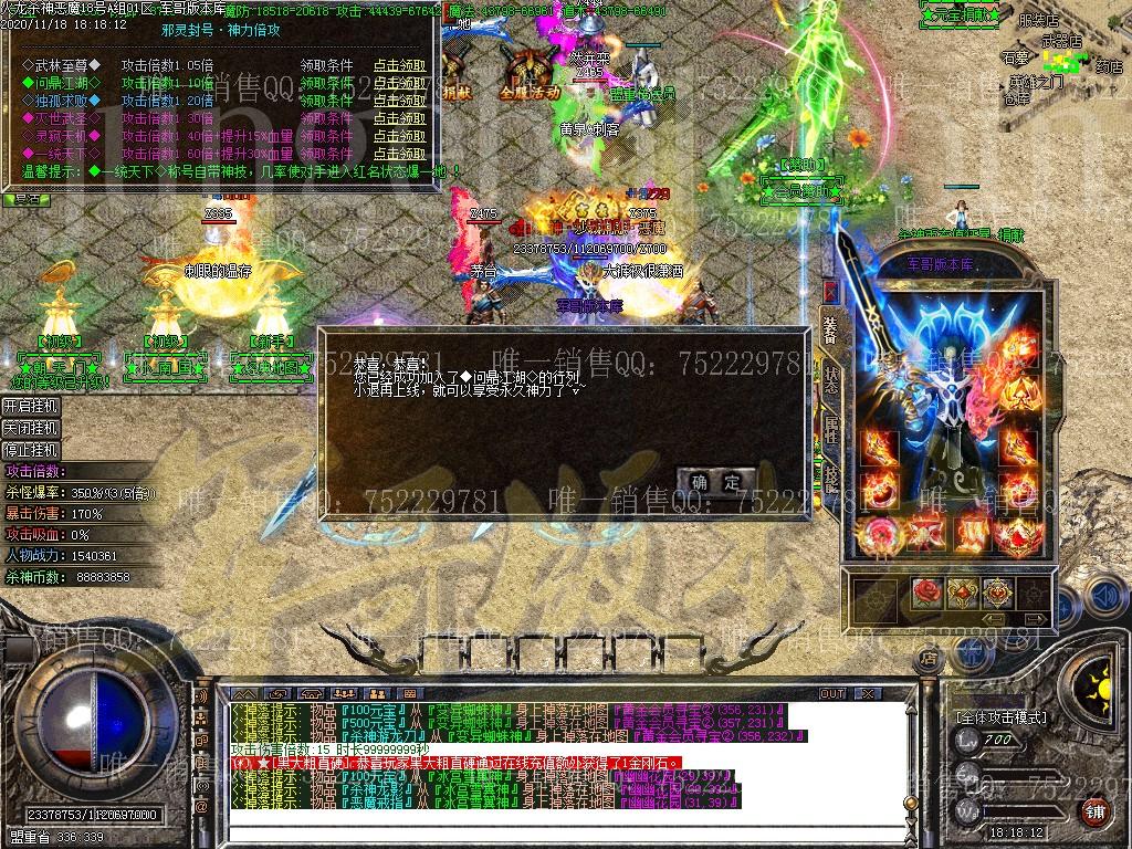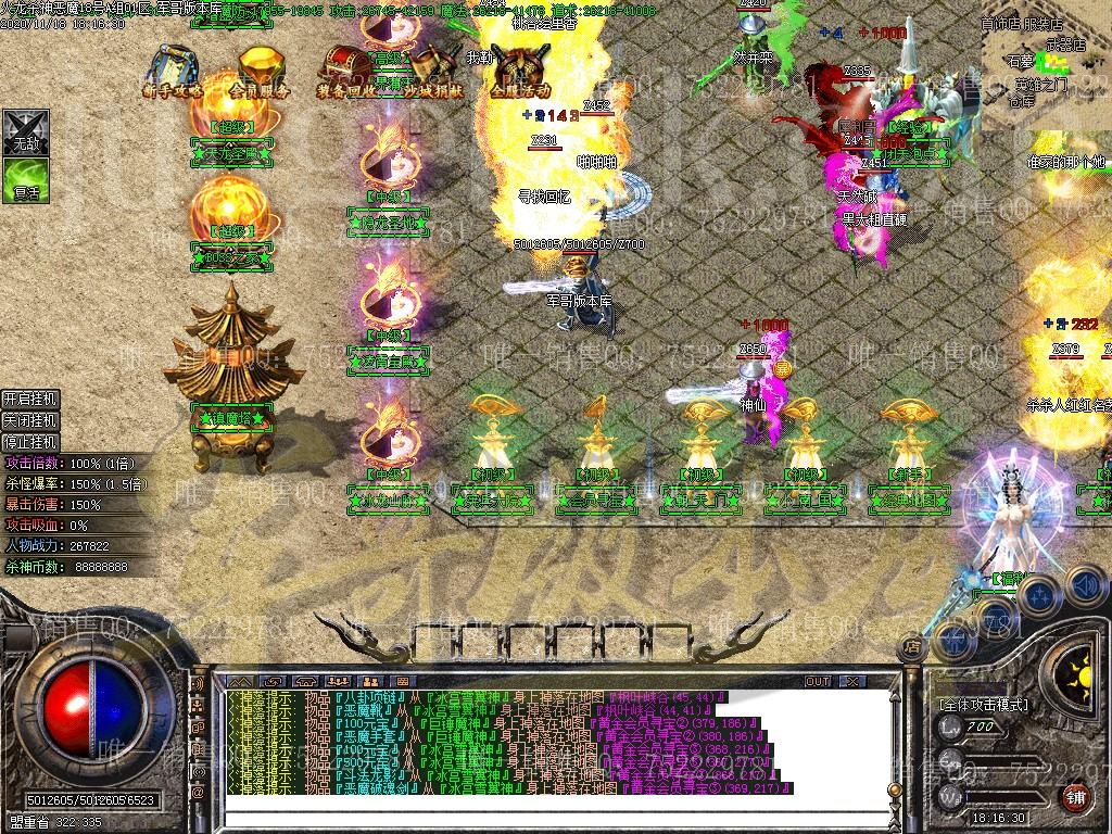 版本介绍:杀神恶魔单职业,750级封顶,三大陆,赞助礼包分3类(首冲礼包,会员赞助,礼包),最高额度300,有NPC,是服(假人也会参与),后期高级装备均带各种特色BUFF,注意版本部分功能需要ESP插件,不然会报错