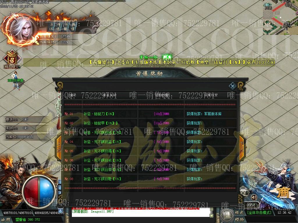 金币充值比例 1 :10   版本为正常开区端有问题联系QQ 616102345  处理