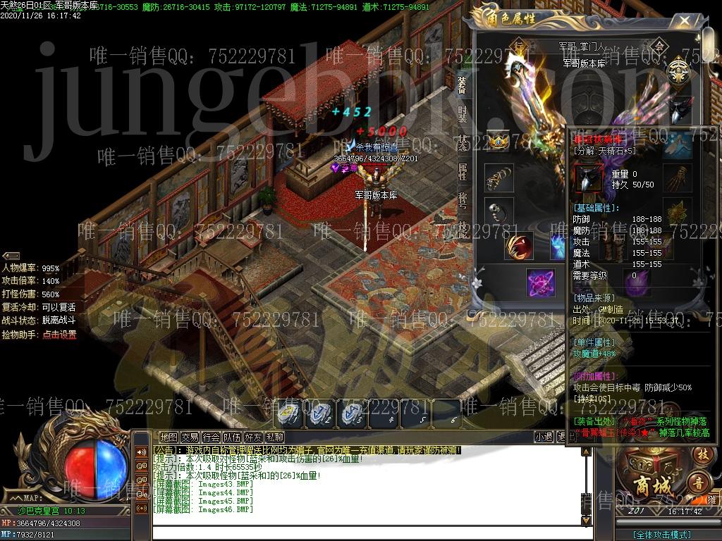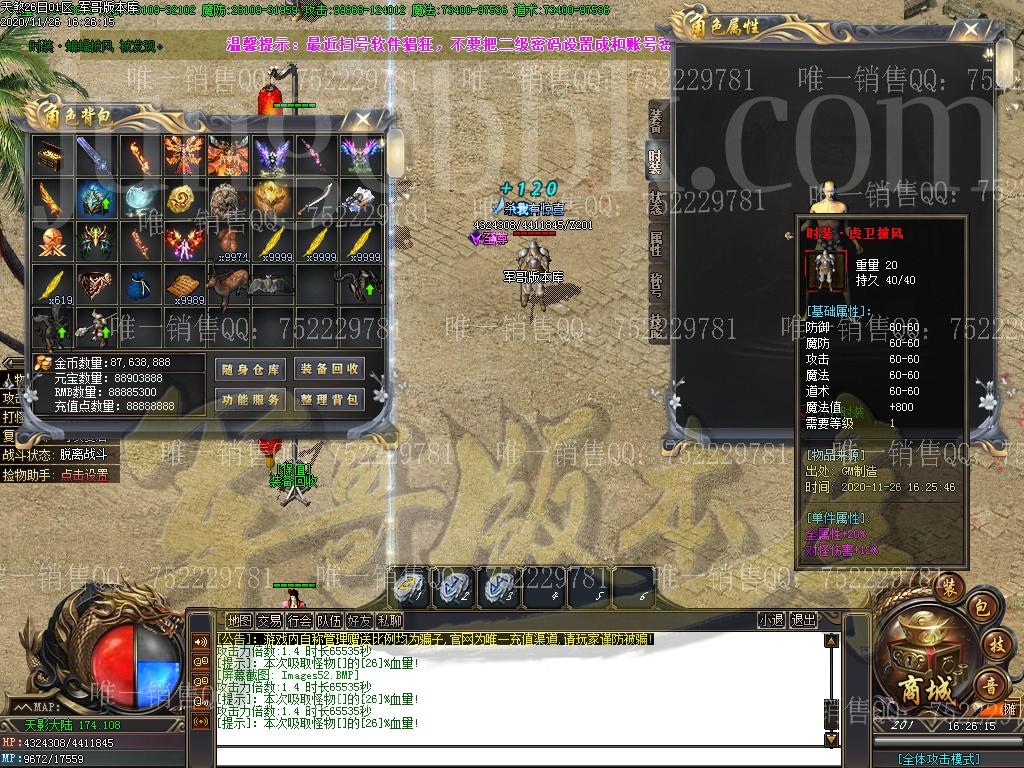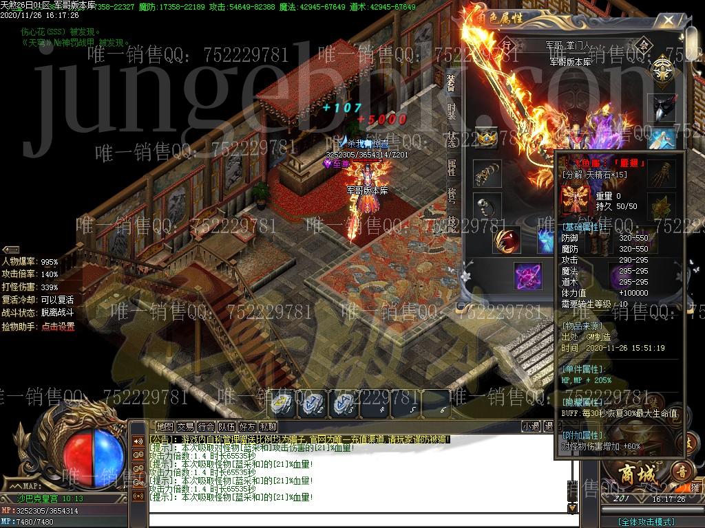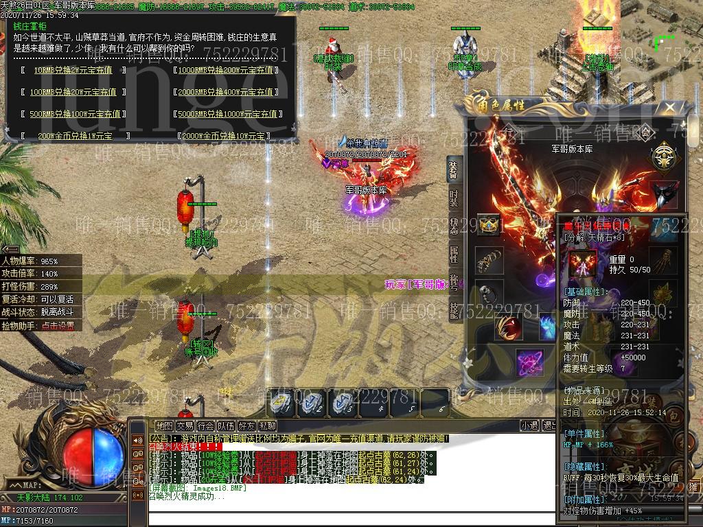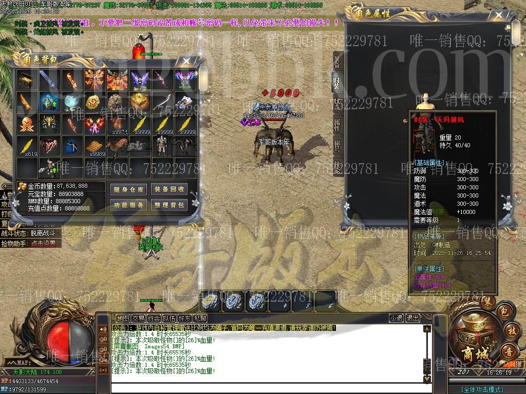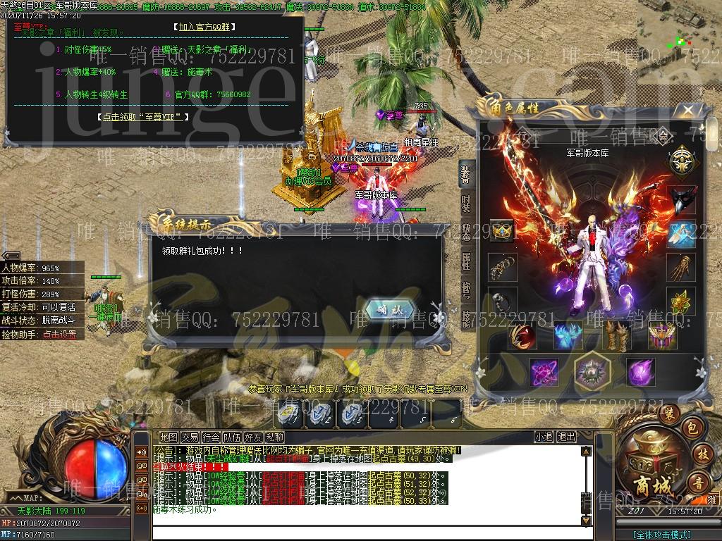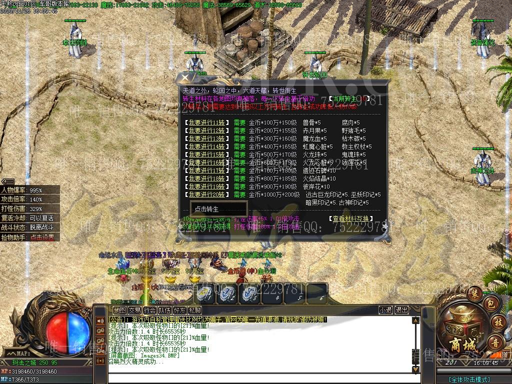 2.有条件的土豪可以花费88万元宝在主城左上角(勋章合成)一个“贵族狂龍章”.送1-4转材料,属性非常强大.散人也可以打一级的合上去