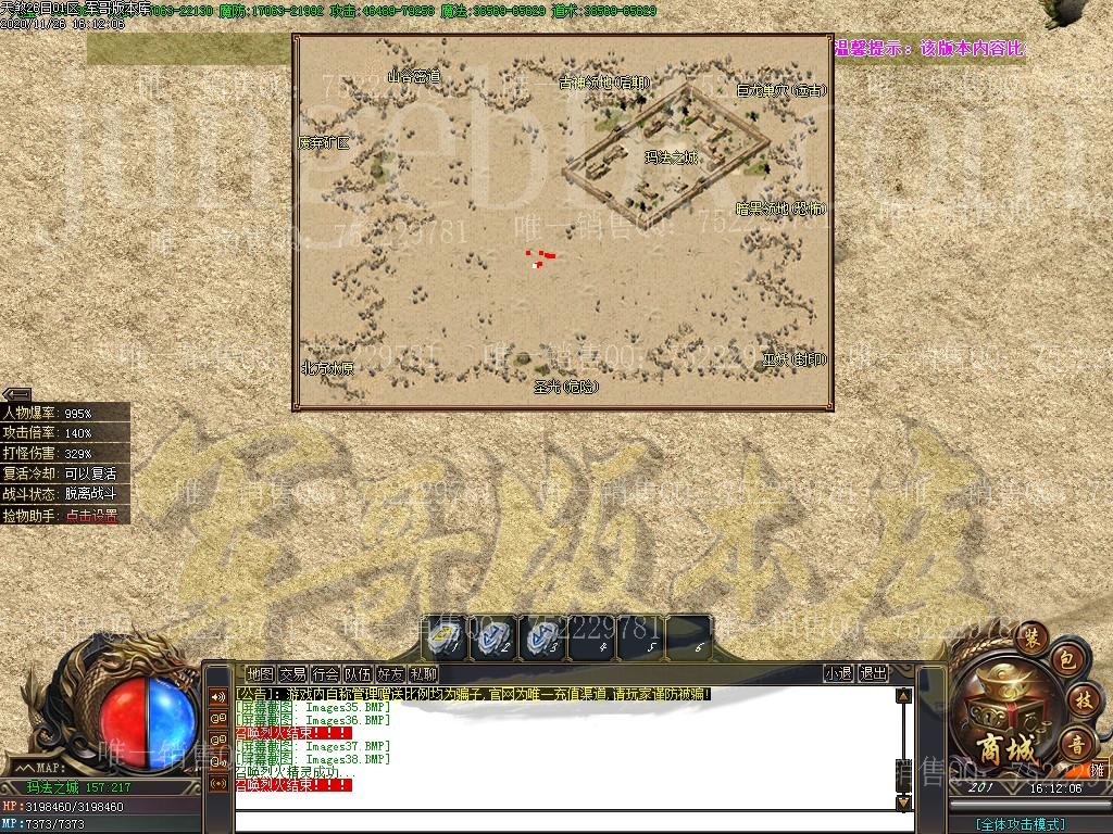 金币充值比例 1 :10   版本为正常开区端有问题联系QQ 616102345  处理