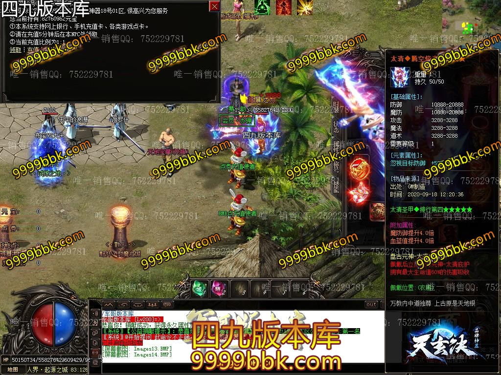 V4 赠送装备:50W元宝 + 15个中级修炼石 + 15个高级修炼石 + 死亡之魂·【聖物】 + 死亡权杖·【法器】