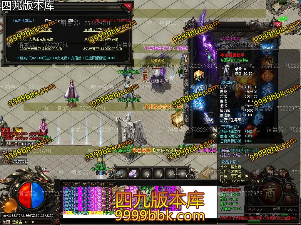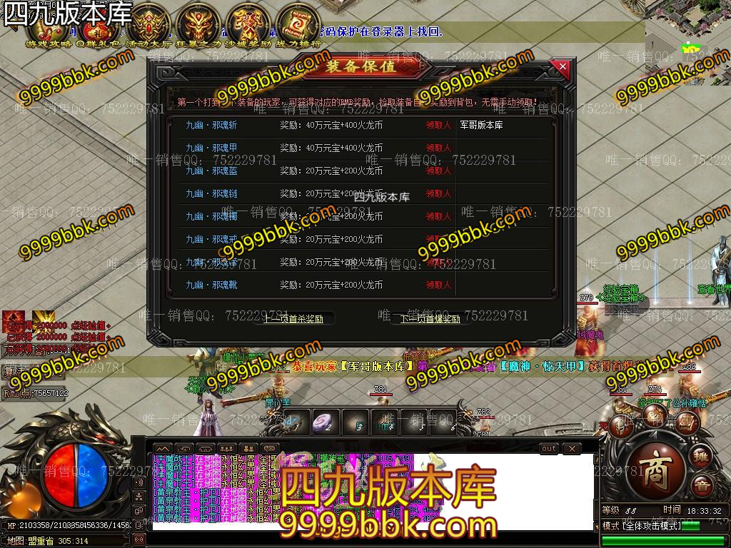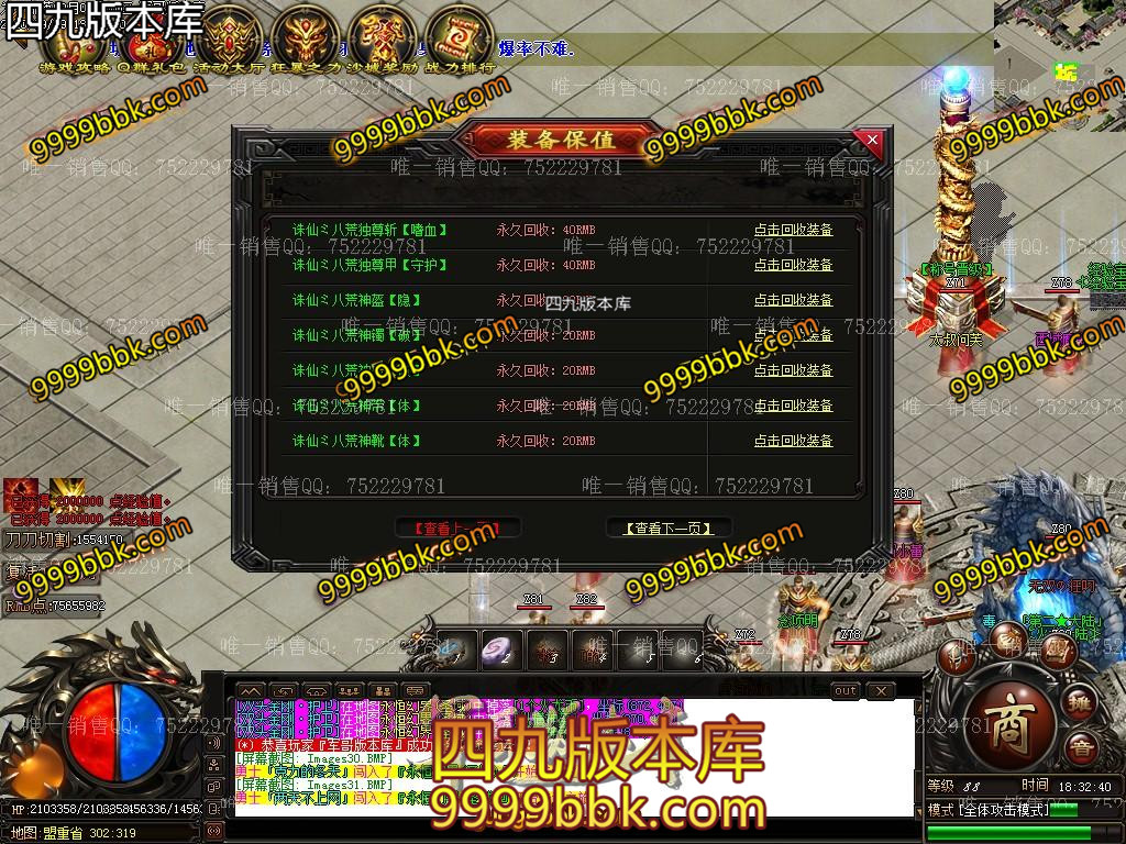 ⑨:注:本服全网最高爆率【最低消费】,十万年以上的怪就爆所有终极装备。