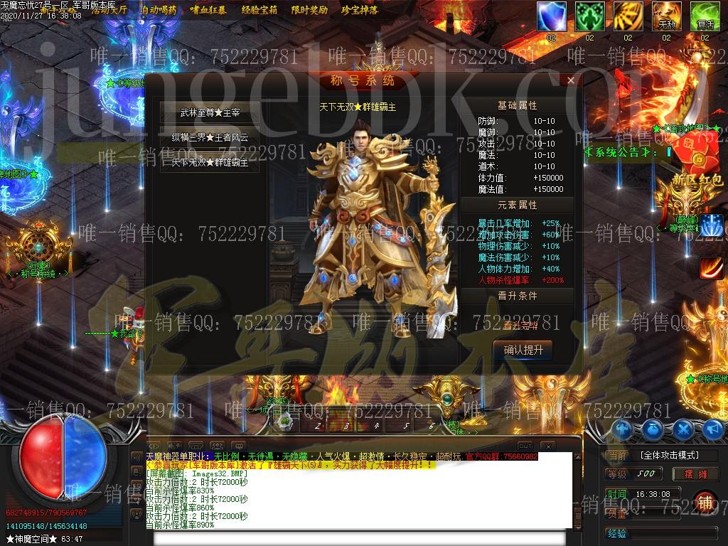 第三点:本服转生 10转满 时装8级满 消费660元 称号12级满 600左右【称号地图红怪翻倍爆率真实增加】 天命 化神满 消耗元宝 超级好升