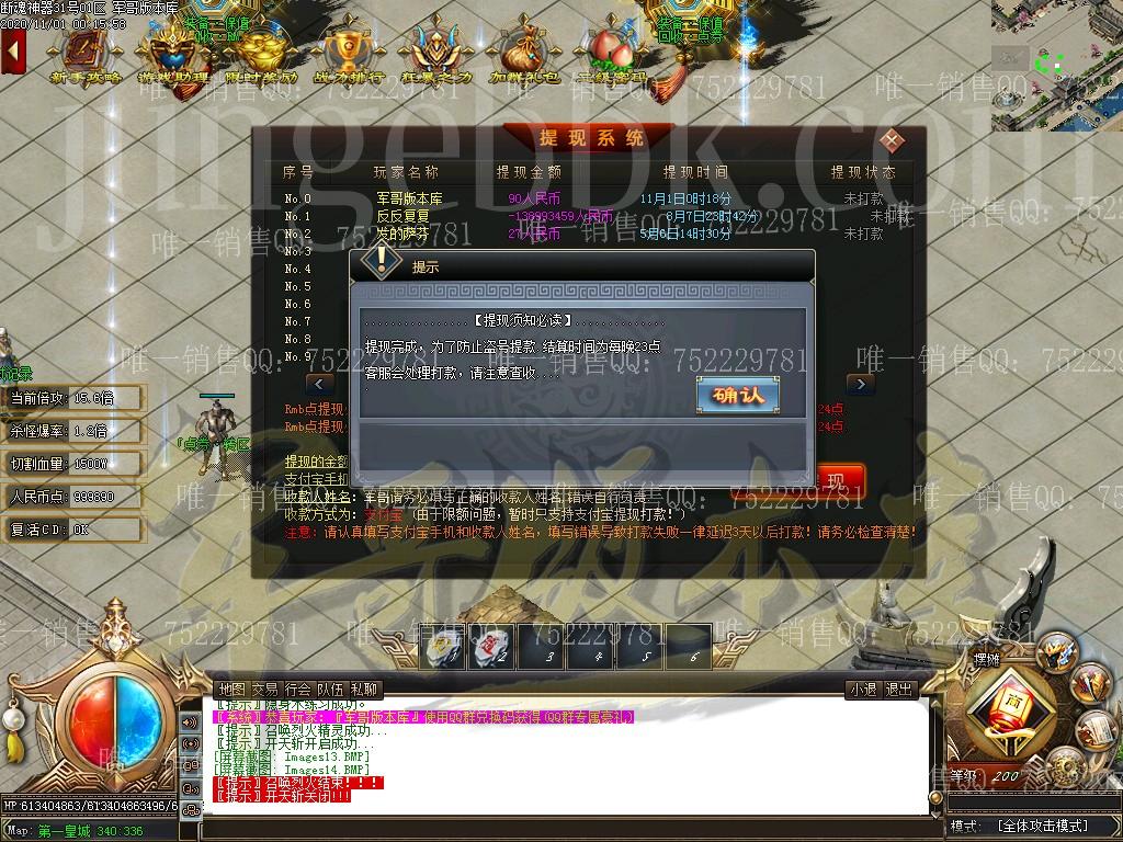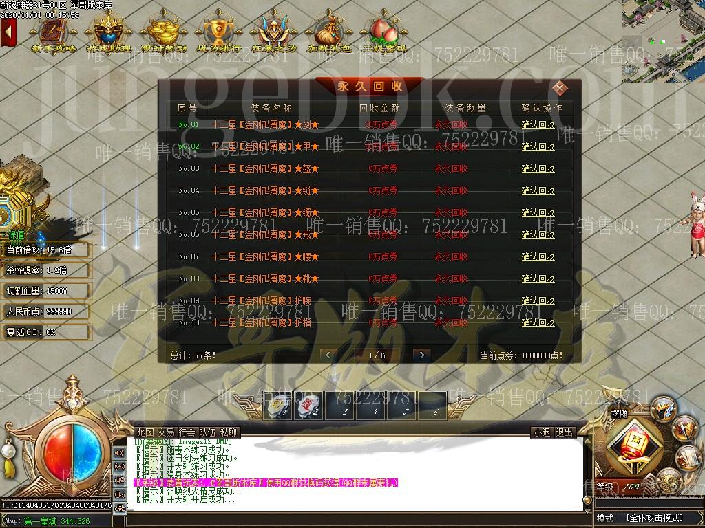 本服保证所有玩家都打怪不等待,所有怪均有几率爆出终极回收