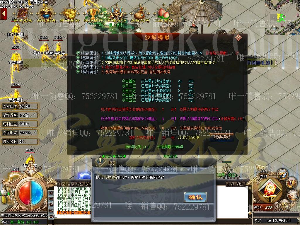 │沙城捐献:每次【20元】(可捐献5次),累计【100元】 每次领取刀刀切割500W血 │