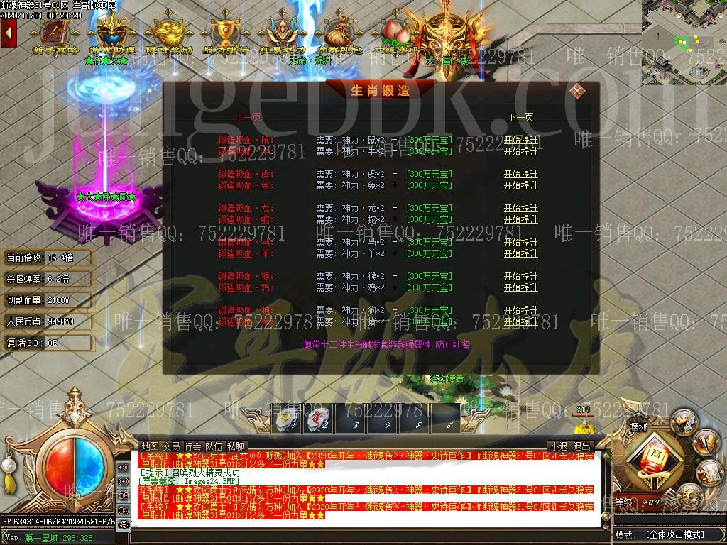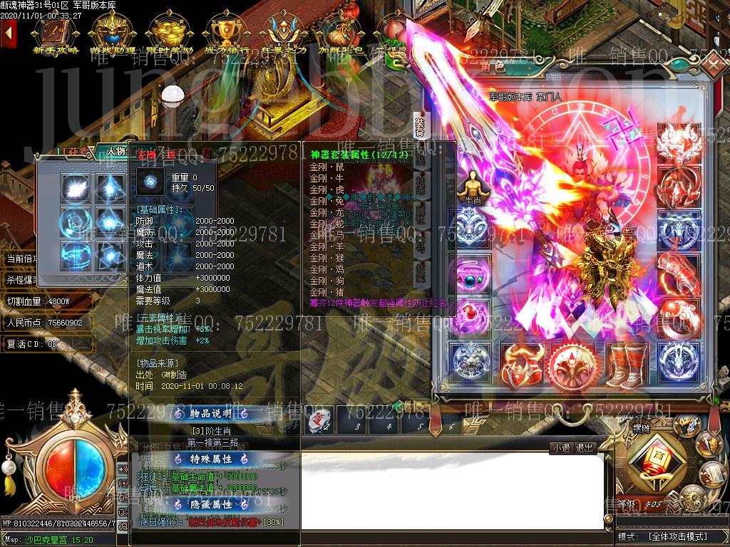 合完区19:30会在复活点刷新一只终极BOSS,必爆次终极获终极剑甲随机一件