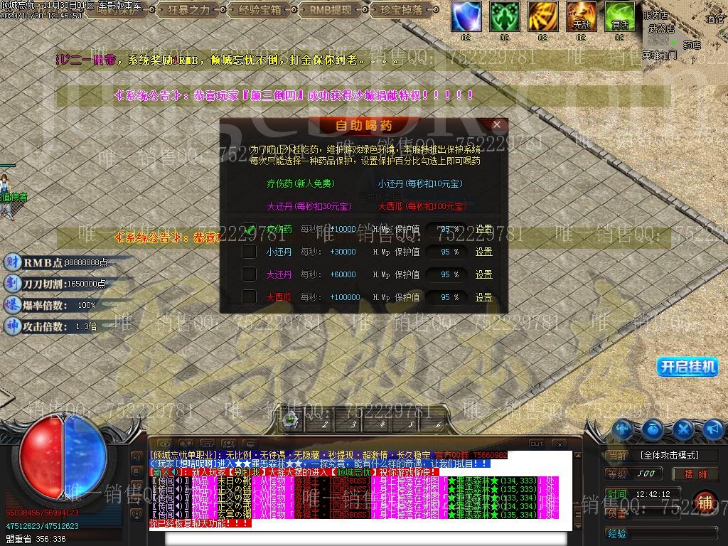 充值玩法 → 充值1048元点券 + 10狂暴 +30沙捐 =1088元 (顶赞+终极切割+自动捡+满沙捐+终极时装专属-打怪嗷嗷叫)