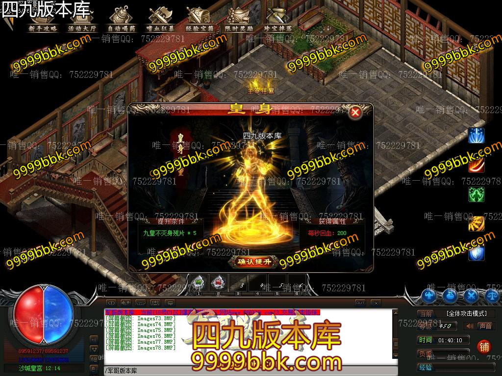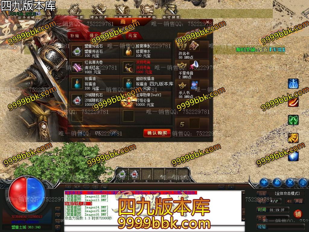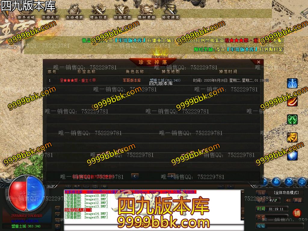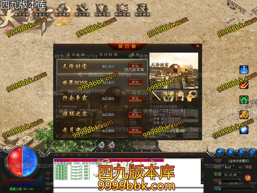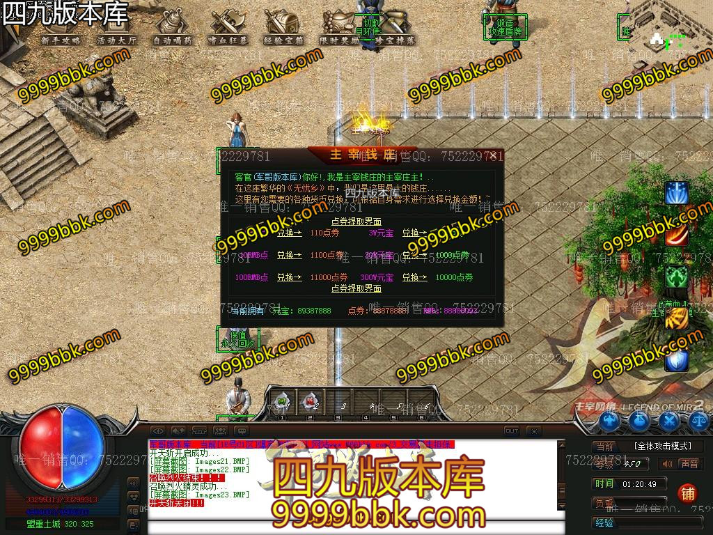 金币充值比例 1 :10   版本为正常开区端有问题联系QQ 616102345  处理