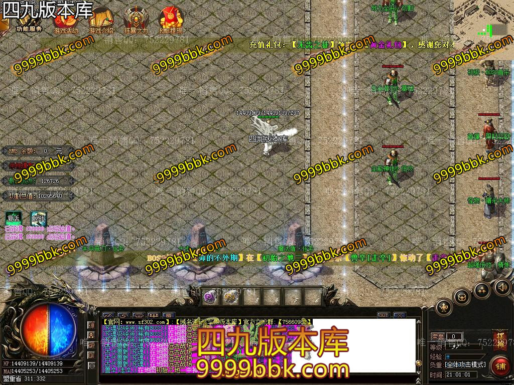 游戏最左上角的功能服务:可开启自动吃元宝,查看战力,远程荣誉捐献及查看BOSS首充功能等;怪物屠杀大师里面达到条件即可免费领取高级武器和BOSS召唤石头(前期土豪必打)