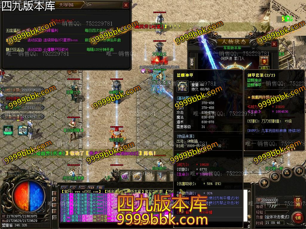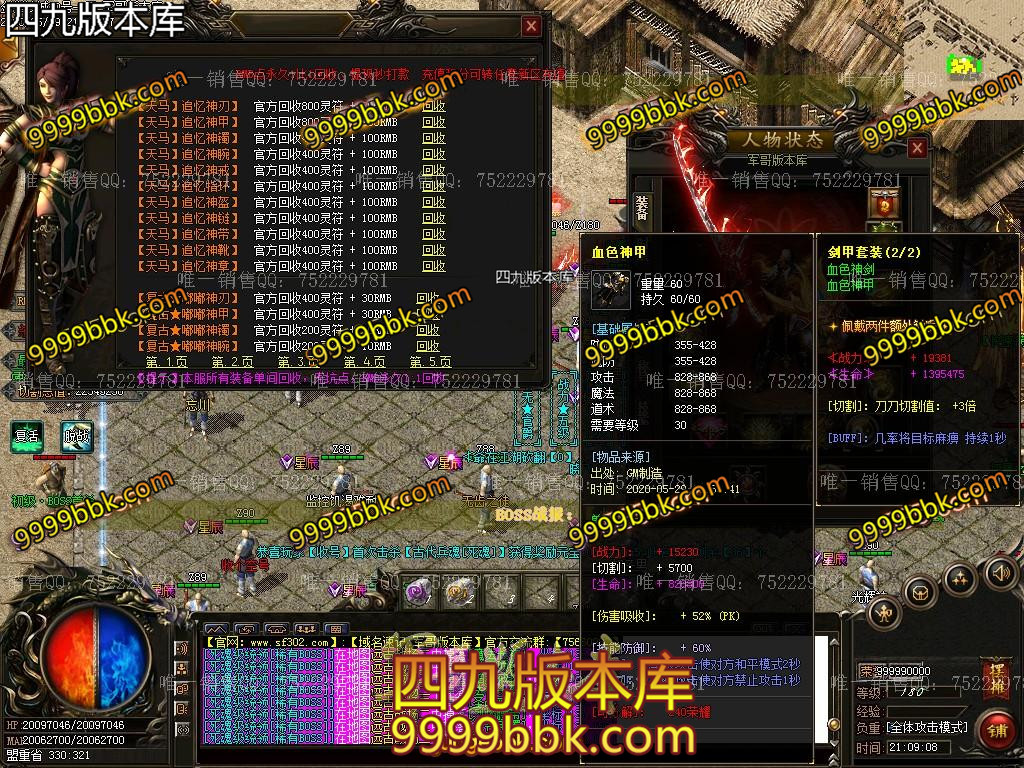 3.合成剑甲(本服只支持剑甲及时装合成,其他全部靠打!高级剑甲全部可以爆出)
