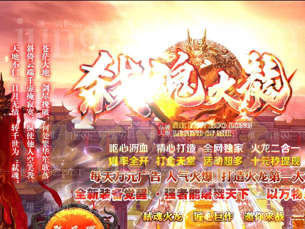 【游戏简介】:弑魂火龙 盛大授权 公司运营 品牌保障 天堂 永不跑路 【游戏简介】:2020独家巨制,全新版本,匠心之作,巨资广告,只赚人气! 【游戏简介】:本服不卖任何物品,地图免费进,全天激情嗨掉你小命 【游戏简介】:本服装备就是,只要肯花时间,绝对玩的开心+赚钱多多! 【游戏简介】:活动超多,赞助免费领,限时奖励内容丰富,等你体验! 【游戏简介】:本服爆率全开,只要有时间,不花钱一样能终极! 【游戏简介】:客服免费担保,铲除了骗子的生存土壤,让你玩得开心,卖得放心!! 【关于新区】:11:00一区,14:00二区,17:00三区,20:00四区,提前60分钟开放测试区! 【元宝比例】:1:2000元宝 网银1:4000 1:1充值 回收1:0.9今日新区及时开区 【关于拿沙】:新区开区第2天下午合区晚上拿沙。奖励沙城捐献+200W元宝2W弑魂币 【关于封挂】:重金定制GK封挂系统,杜绝一切外挂、加速、辅助,打造绿色公平游戏! 【关于封挂】:重金定制GK封挂系统,杜绝一切外挂、加速、辅助,打造绿色公平游戏 ============================================================