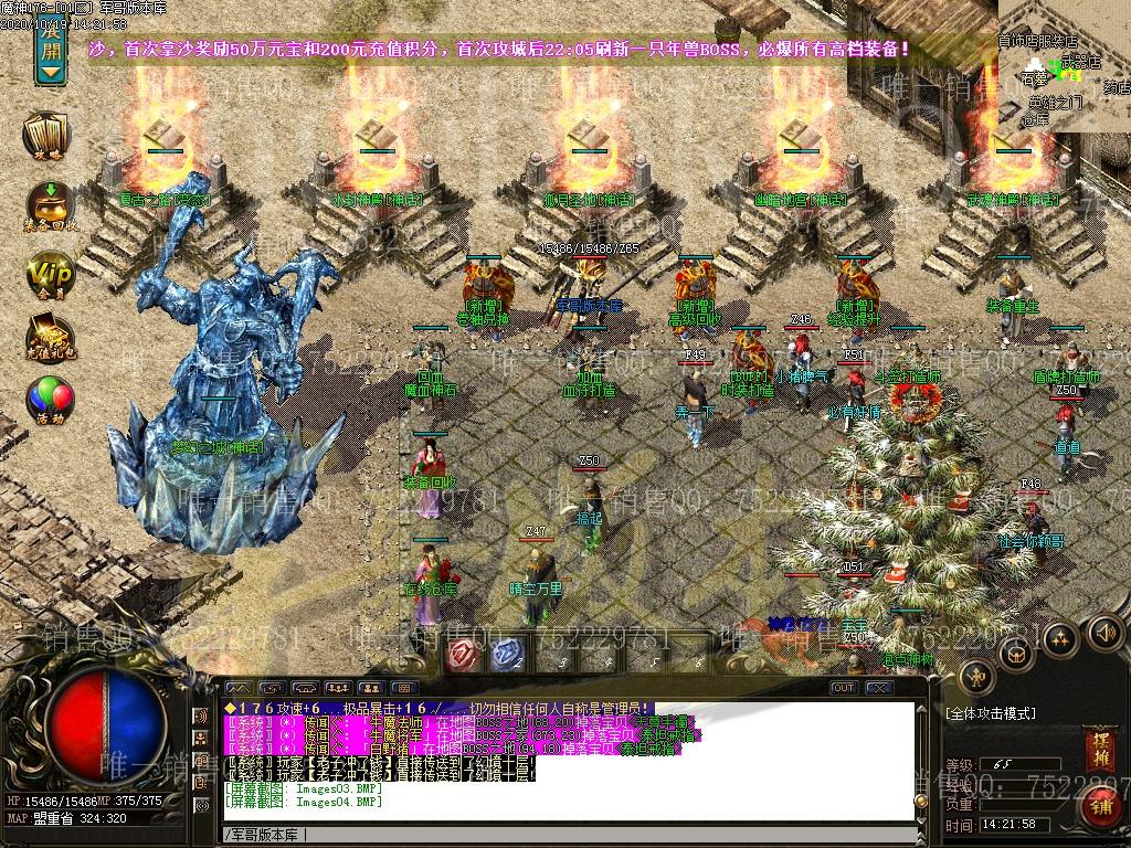 占沙奖励:新区第2天合区,第2天统一攻沙,首次拿沙奖励50万元宝和200元充值积分,首次攻城后22:05刷新一只年兽BOSS,必爆所有高档装备!