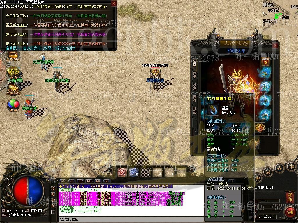 [GOM引擎] 17-655独家魔神1.76元素小极品鉴定复古三职业传奇服务端-带假人-ESP插件-光柱-自动回收