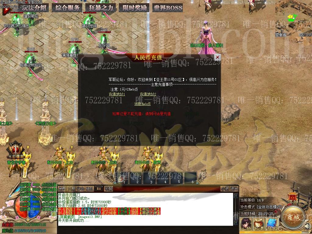 金币充值比例 1 :10   版本为正常开区端有问题联系QQ 616102345  处理