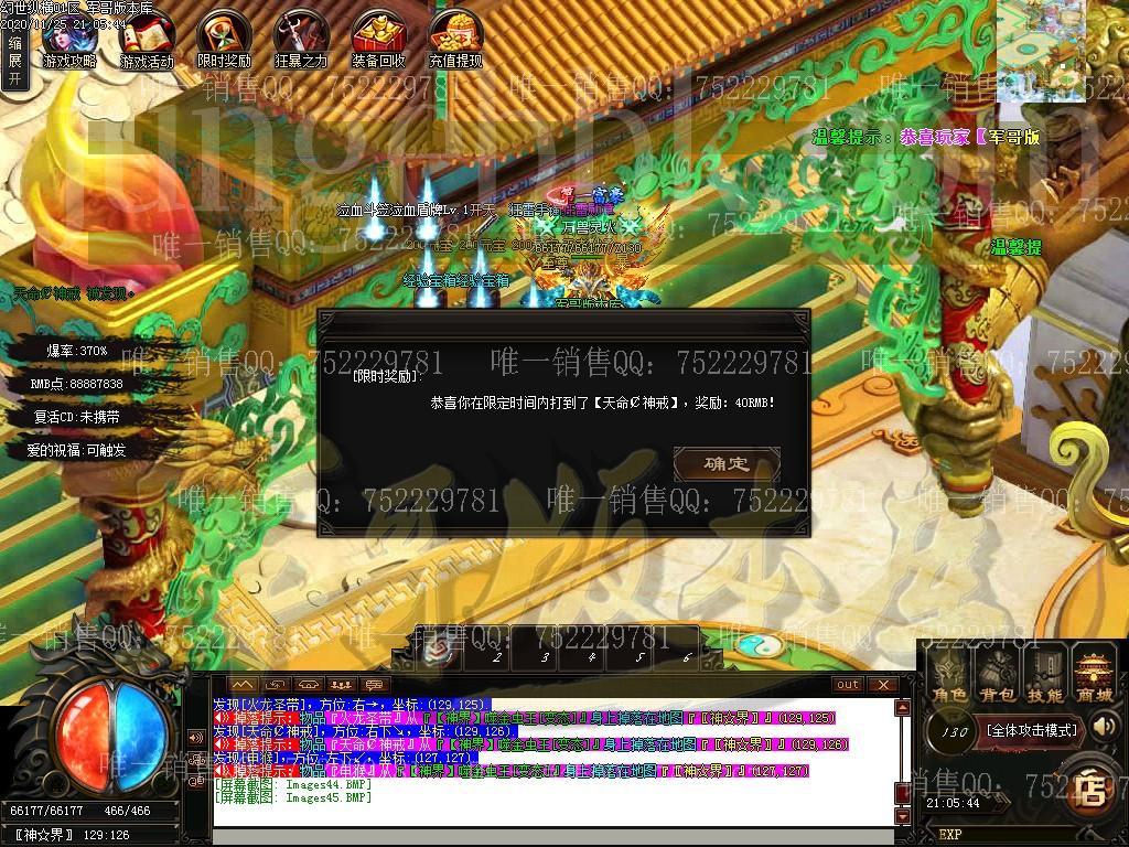 金币充值比例 1 :10   版本为正常开区端有问题联系QQ 616102345  处理