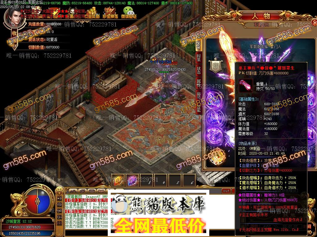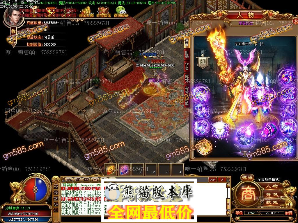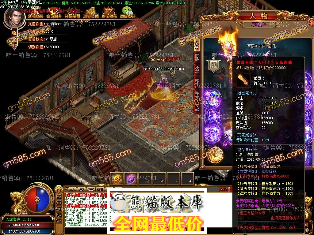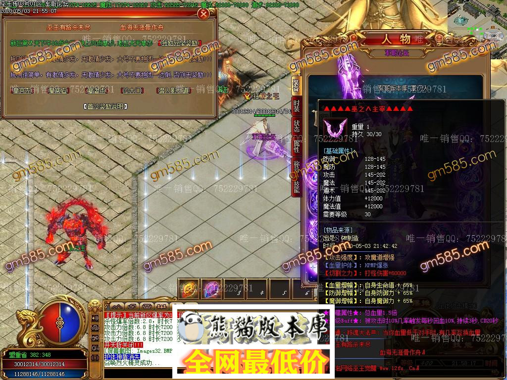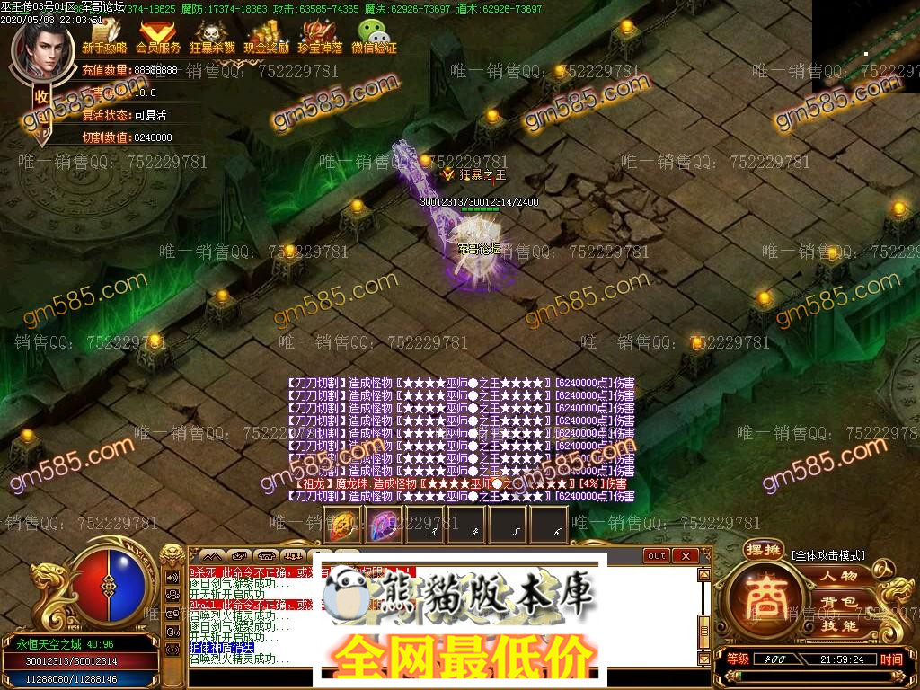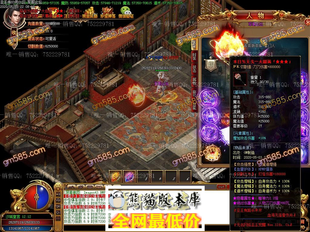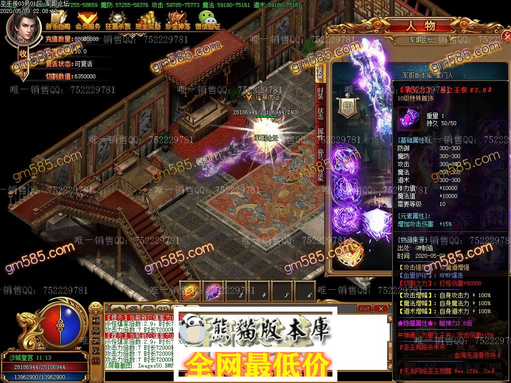 狂暴之力:50%杀怪真实爆率、全5元素属性、十步一杀(已经优化,指哪打哪)、刀刀切割50W、专属打宝地图(刷新全服顶级BOSS)