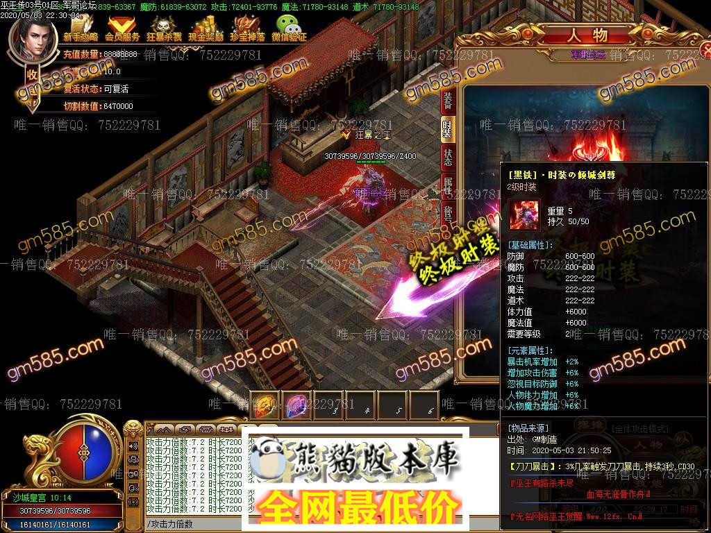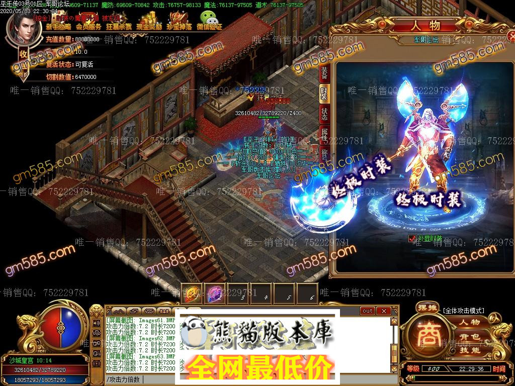 ②时装:炫酷的时装外形,极高的元素属性,高几率触发刀刀几率,多个打宝专属地图(刷新全服顶级BOSS), 终极时装更有神秘属性 杀人越货必备