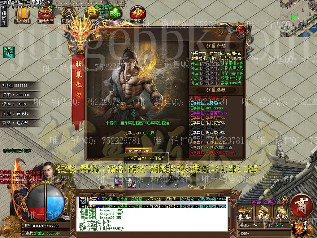 金币充值比例 1 :10   版本为正常开区端有问题联系QQ 616102345  处理