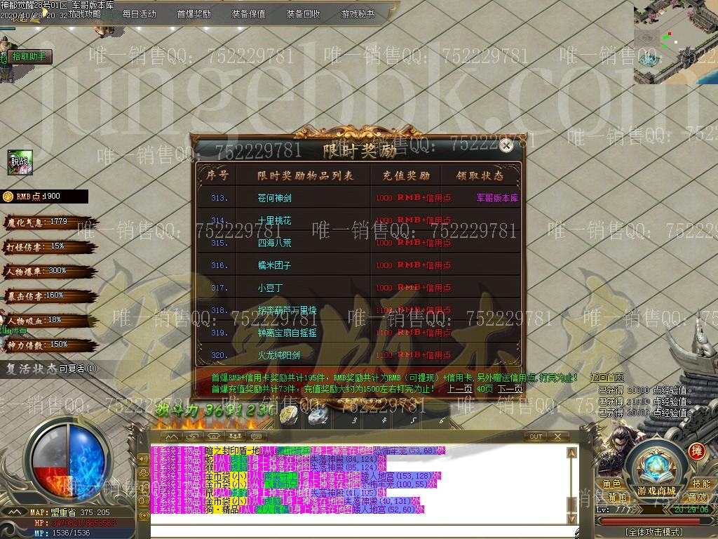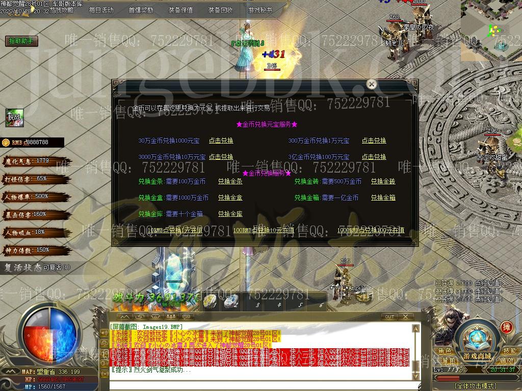 金币充值比例 1 :10   版本为正常开区端有问题联系QQ 616102345  处理