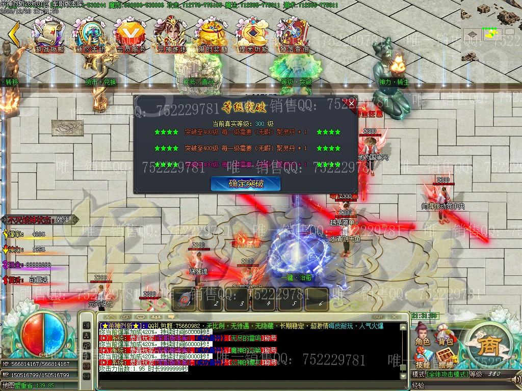 散人:消费22米.沙捐20米狂暴2米.依次进入相应的地图进行发育,装备,材料全靠爆!