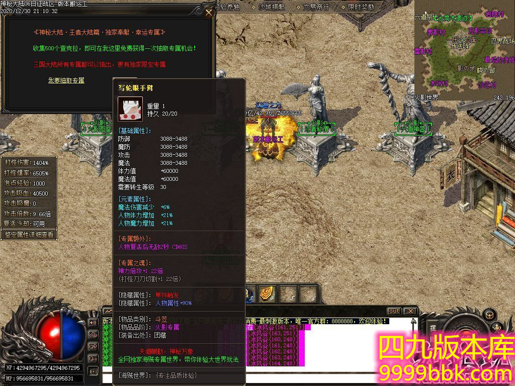 3修复前期装备属性秒人问题,同时人物对人物伤害整体降低30%