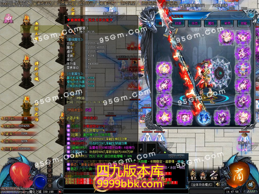 6.本服切割多样化,九星装备对人物,怪物都可照成真实伤害,打到就是,切勿丢弃!