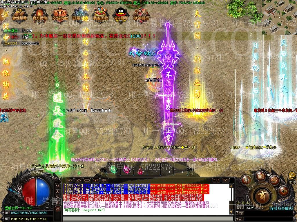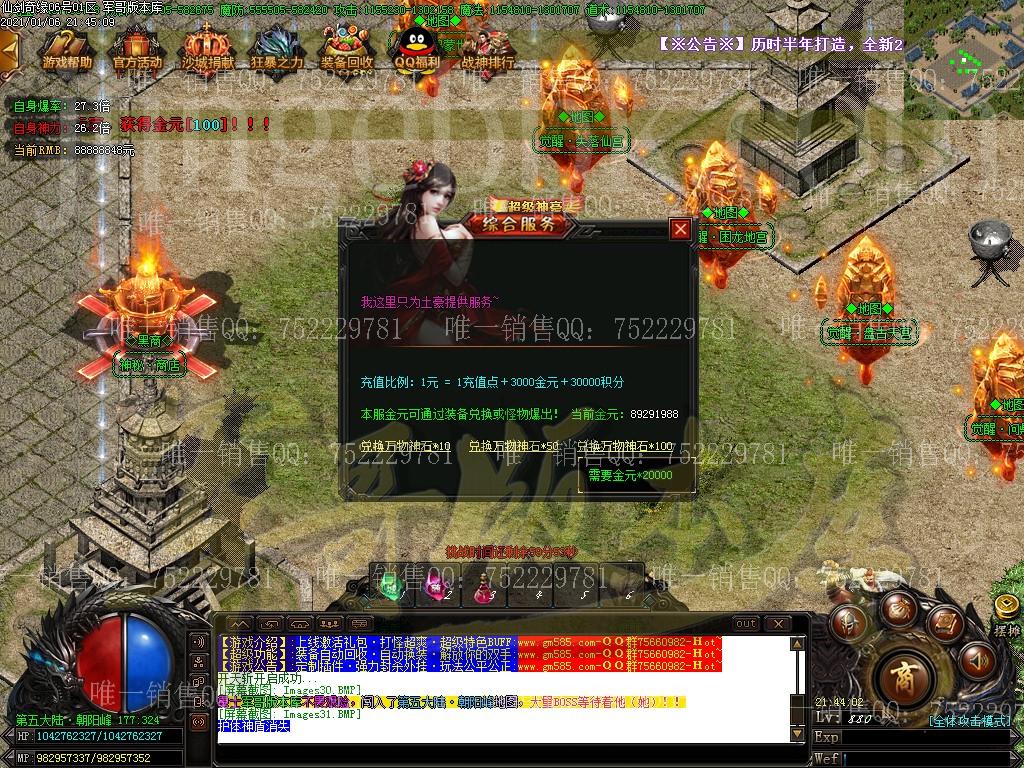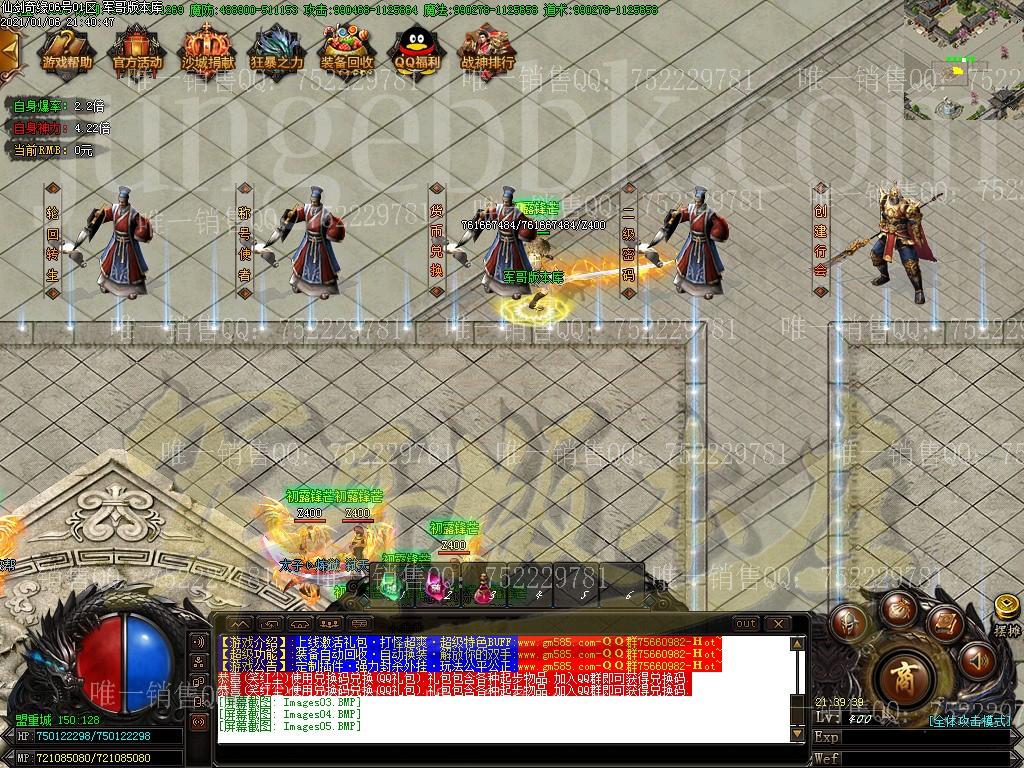 金币充值比例 1 :10   版本为正常开区端有问题联系QQ 616102345  处理